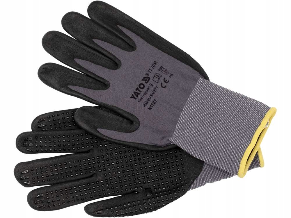 рукавички YT-74758 призначені для захисту рук від механічних небезпек з великим упором на поліпшення сили захоплення. Безшовна конструкція з щільністю стібка 15 стібків на дюйм забезпечує максимальний комфорт і чудове відчуття утримуваного предмета. Покриття спіненим нітрилом і використання нітрилового покриття роблять захватні частина найвищою за стандартом стійкістю до стирання, дуже хорошими протиковзкими властивостями, а також високою стійкістю до бензину, дизельного палива, парафіну, розчинників, мастильних матеріалів і т. д. Вони відповідають вимогам EN 420 і EN 388: 2016.
