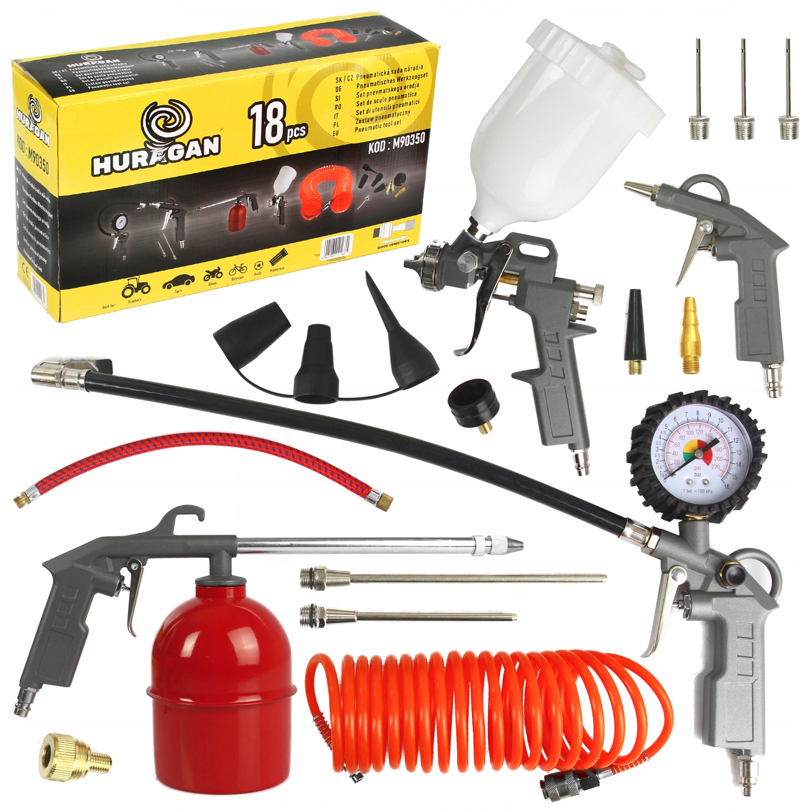 Подовжувачі та наконечники, що входять до набору, дозволять вам накачувати велосипеди, матраци, м'ячі, колеса мотоциклів та автомобілі