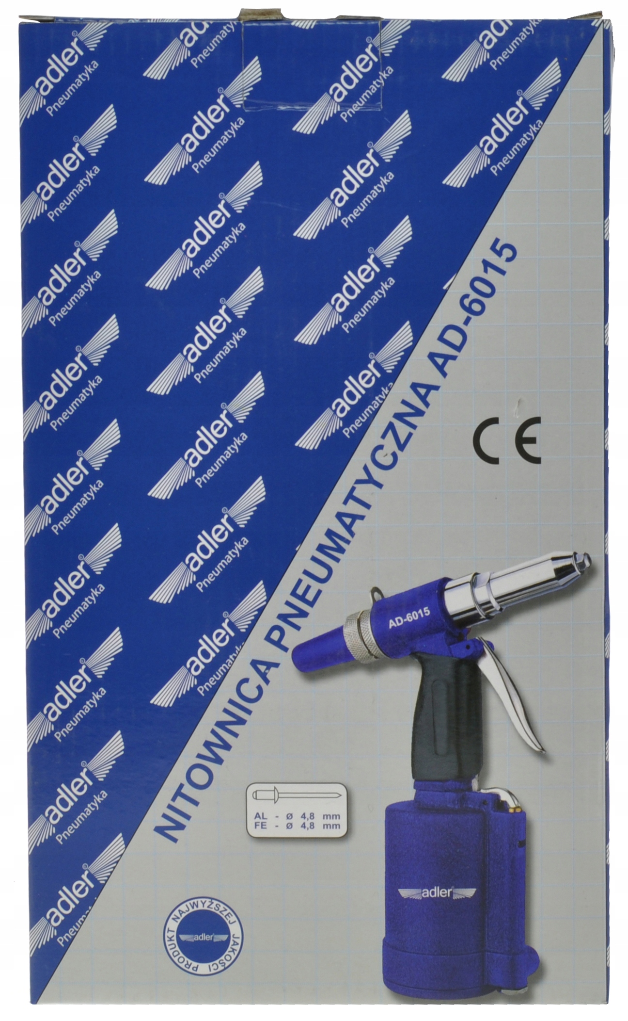 Модель може зламати алюмінієві та сталеві заклепки діаметром до 4,8 мм. Заклепувальник AD-6015 оснащений відкритим контейнером для залишків заклепок. Прогумований чохол ручки покращує захоплення пристрою і не втомлює руку.