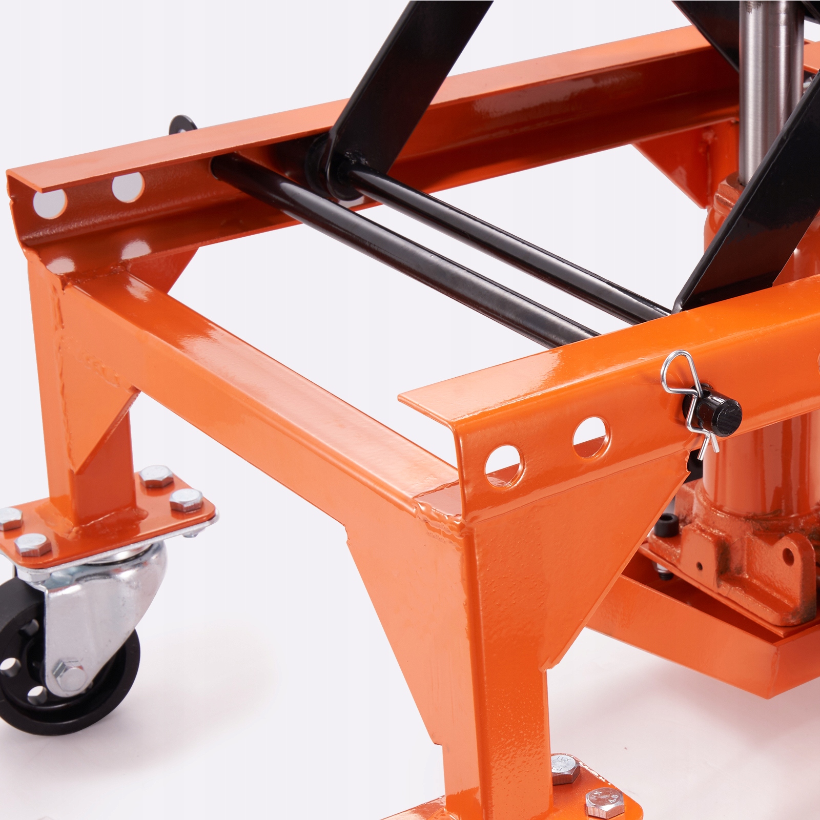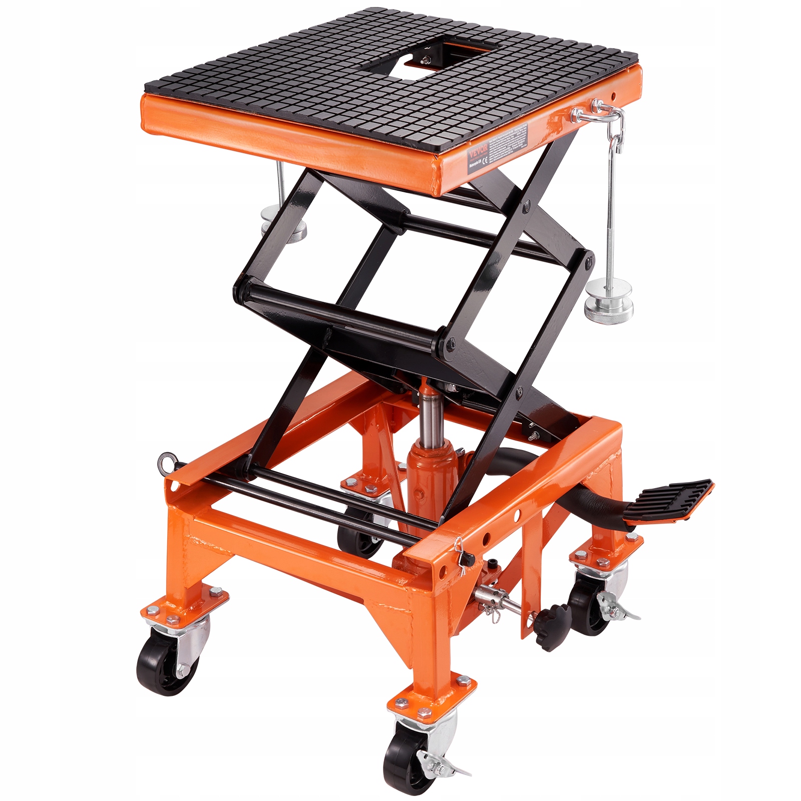 Безпечний підйом: щоб забезпечити максимальну безпеку під час підйому мотоцикла, наш мотоциклетний домкрат оснащено фіксуючою шпилькою, яка фіксує його на потрібній висоті. Крім того, домкрат для мотоциклів оснащений J-подібним гаком, який забезпечує додаткову стійкість і запобігає хитанню або перекиданню під час обслуговування. Це збереже ваш автомобіль у безпеці та непошкодженості.