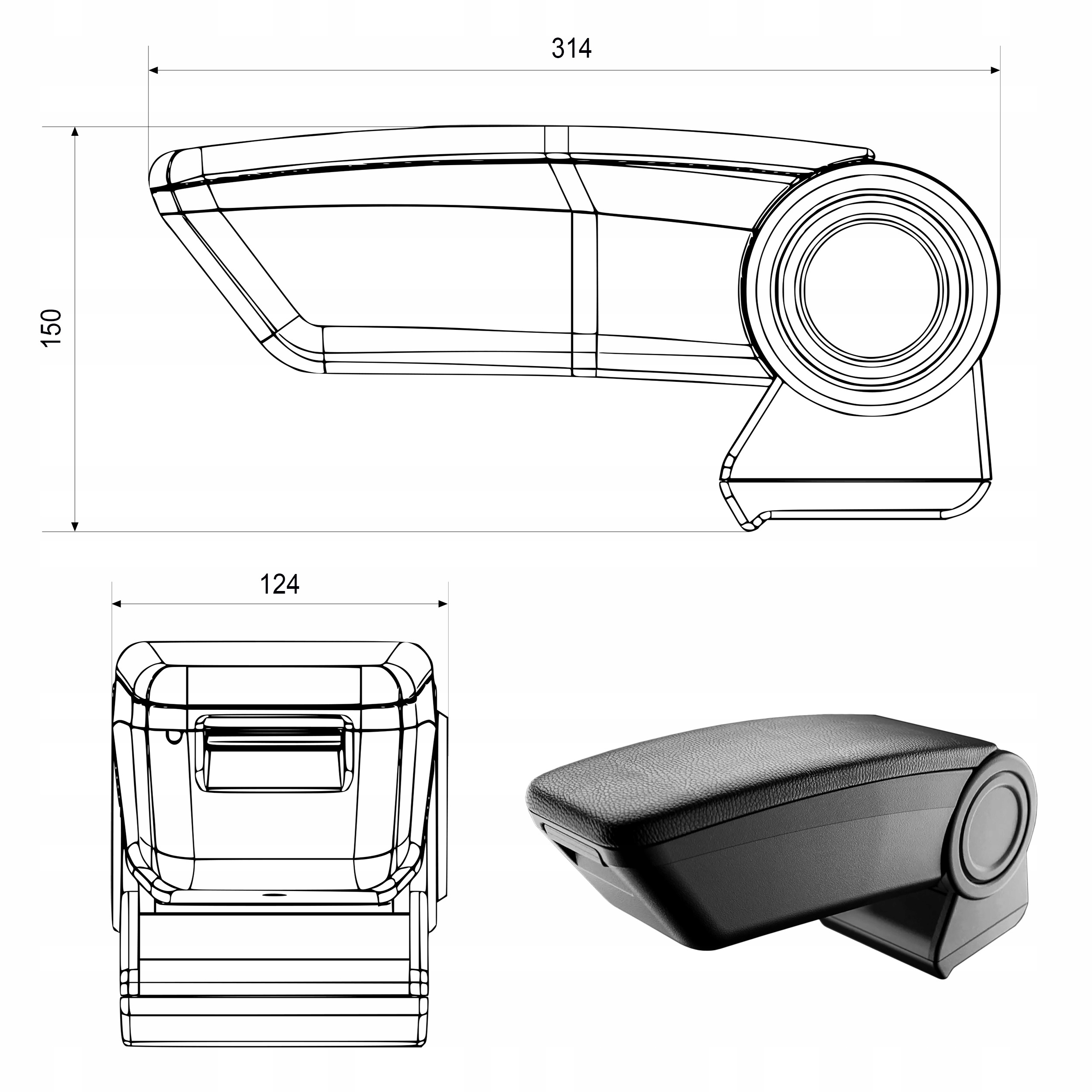 ✅ простота установки: підлокітник монтується дуже просто і швидко за допомогою спеціального адаптера для установки в центральному тунелі автомобіля.
