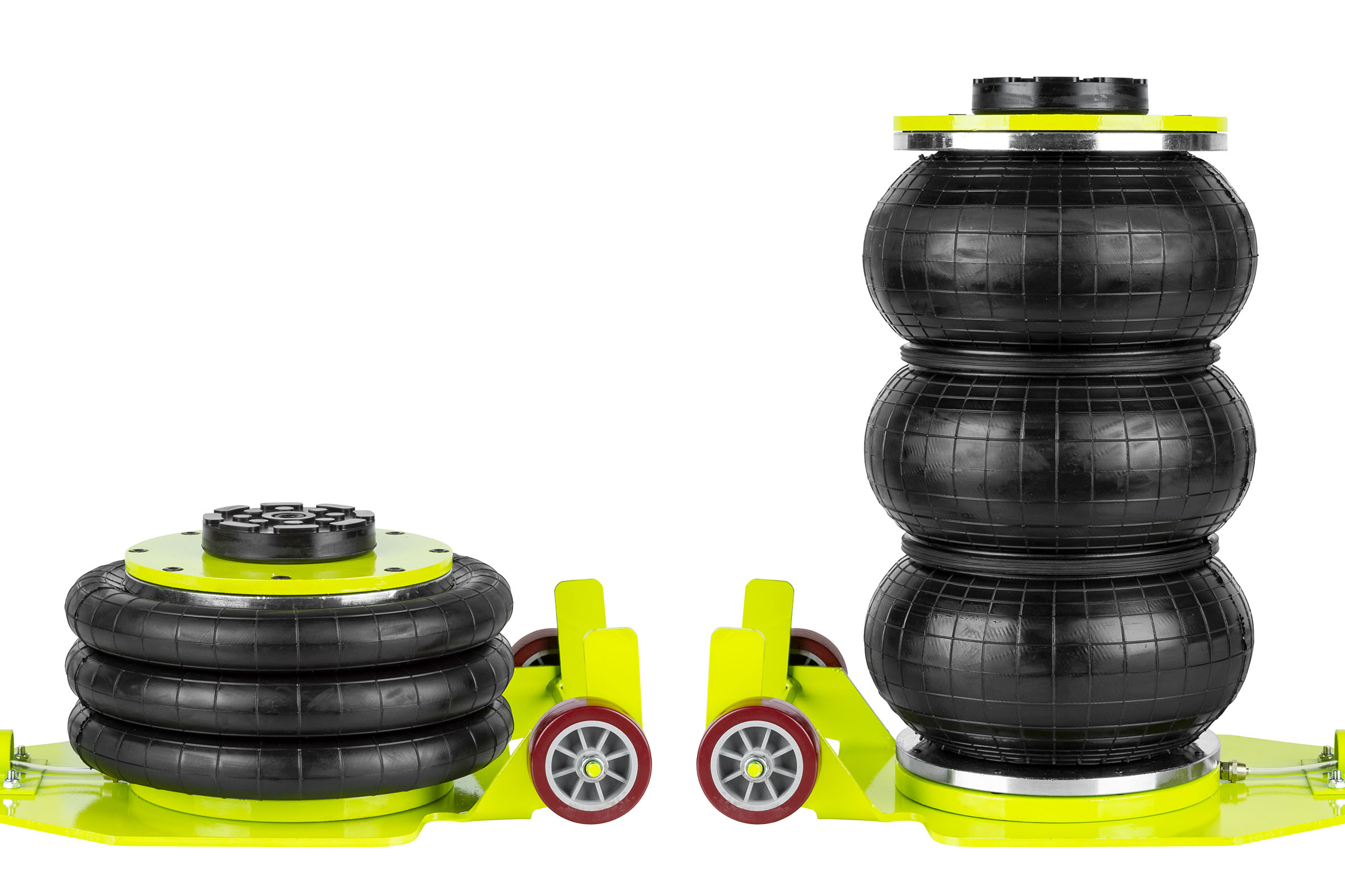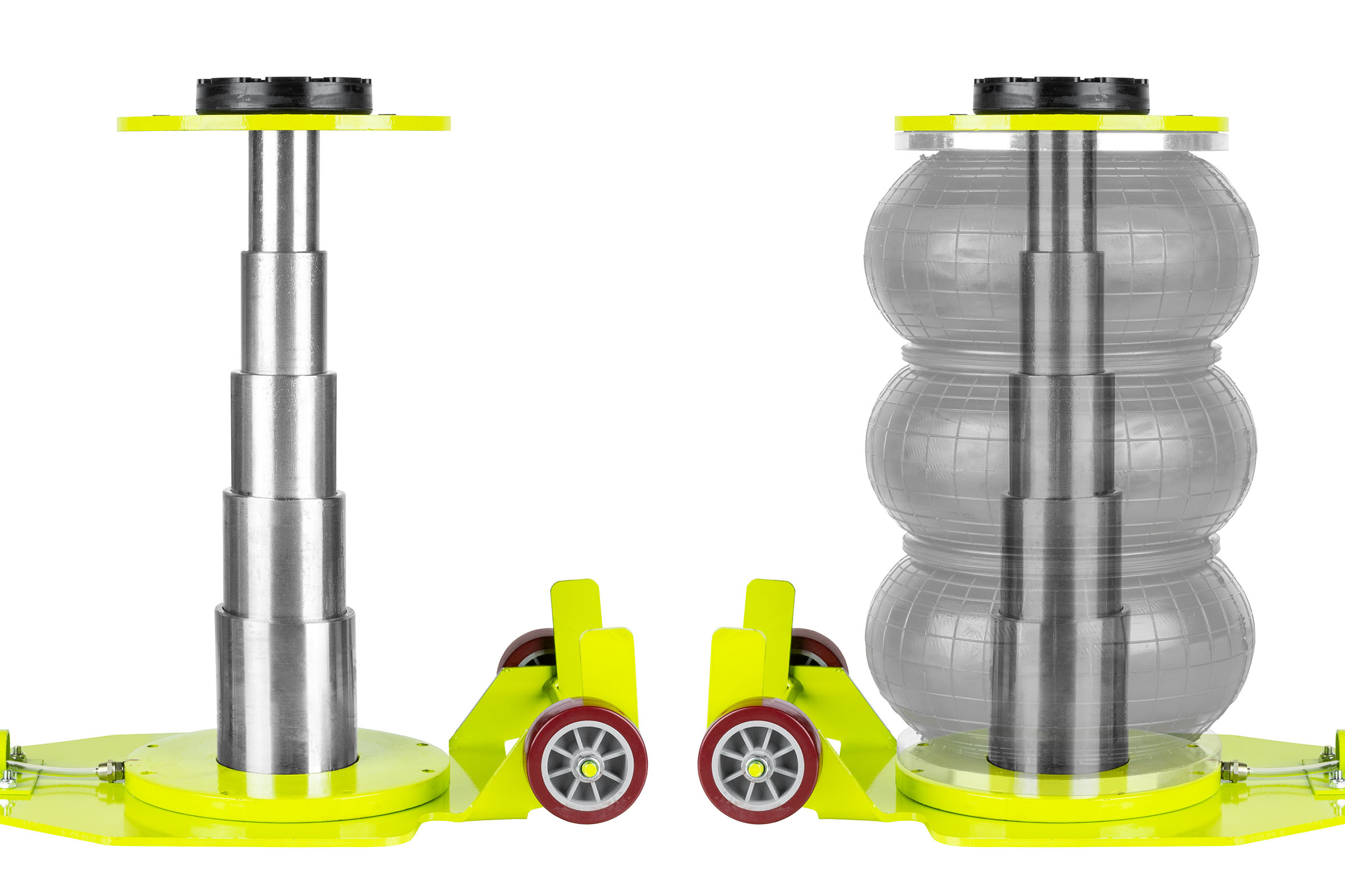 Підйомник, оснащений впускним і випускним клапанами, дозволяє безпечно від'єднати джерело повітря після надування, виключаючи ризик неконтрольованого спуску.