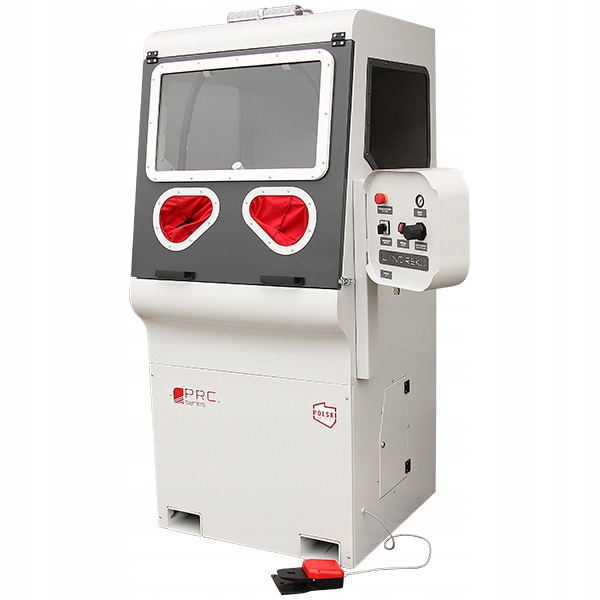 Стандартизований затискний з'єднувач, встановлений у пристрої, захищає від випадкового від'єднання шланга подачі стисненого повітря, а також забезпечує його швидку та безпечну заміну незалежно від його діаметра. Комфорт і безпека роботи забезпечується використанням точного світлодіодного освітлення і 3-елементного пакету візора зі змінними захисними плівками розміром 410×740 мм. Щоб задовольнити зростаючі вимоги до безпеки, усі вибухові машини серії PRC оснащені автоматичним запобіжним вимикачем, який перериває роботу пристрою при відкритті дверей робочої камери. Залежно від вимог, для дробеструйних машин серії PRC можна використовувати три типи виділених систем поділу та знепилення з різною ефективністю очищення робочої камери та ступенем відновлення абразиву.