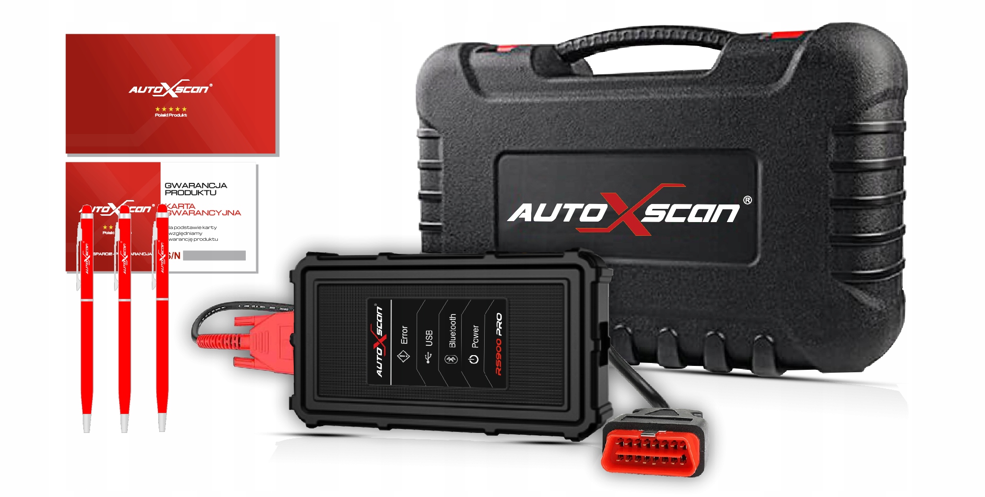 RS900 PRO — це бездротова діагностична головка, укладена в броньований корпус майстерні! Працює з усіма ПК, ноутбуками, ноутбуками та планшетами з операційною системою Windows 7, 8 або 10! Інтерфейс дозволяє проводити бездротову діагностику через Bluetooth на відстані до кількох десятків метрів від автомобіля. Інтерфейс повністю працює польською мовою