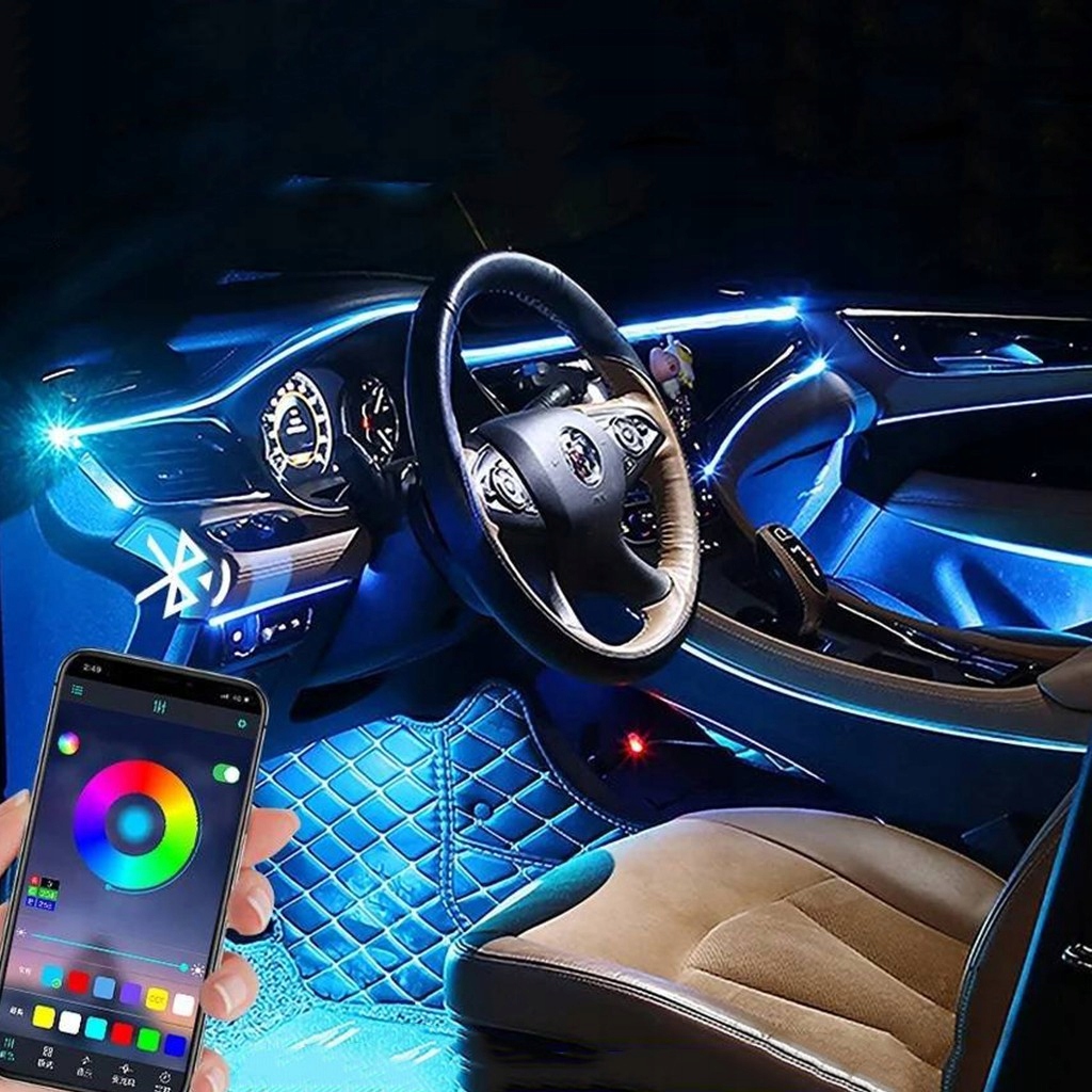 за допомогою одного дроту можна керувати кількома кольорами з програми телефону. Завдяки простому використанню програми, ви легко зміните колір салону вашого автомобіля. на вибір пропонується цілих 6 основних колірних варіантів, які можна вільно змінювати з програми на вашому телефоні!