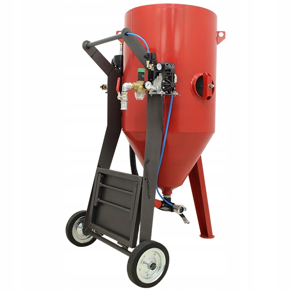 Пропонований багатофункціональний абразивоструйний апарат є професійним, безпечним і сучасним приладом від польського виробника. Пескоструминна машина оснащена резервуаром під тиском з конічним дном для полегшення ковзання матеріалу та інспекційним гаком, що забезпечує швидке спорожнення абразиву з резервуару. Високоякісний абразивний клапан MACRO+ характеризується механічною міцністю та стійкістю до стирання вище середнього порівняно зі стандартними клапанами, встановленими в дробеструйних машинах конкуруючих компаній. Управління пескоструйним апаратом просте та безпечне завдяки розташуванню ручки керування на кінці робочого кабелю. Безсумнівною перевагою даного рішення є можливість перервати роботу пристрою оператором, який безпосередньо виконує процес піскоструминної обробки, що продиктовано останніми правилами охорони праці. Конструкція клапана позбавляє від необхідності використання дорогих діафрагм і поршнів. Ще однією перевагою використання клапанів MACRO+ в наших пристроях є можливість точного дозування будь-якого типу абразивного матеріалу - як кварцового піску та скляних мікросфер, борошна та керамічного грануляту, так і найбільш агресивних: корунду, електрокорунду, дріб, горіхової шкаралупи та піску. , а також соду в процесі соду.