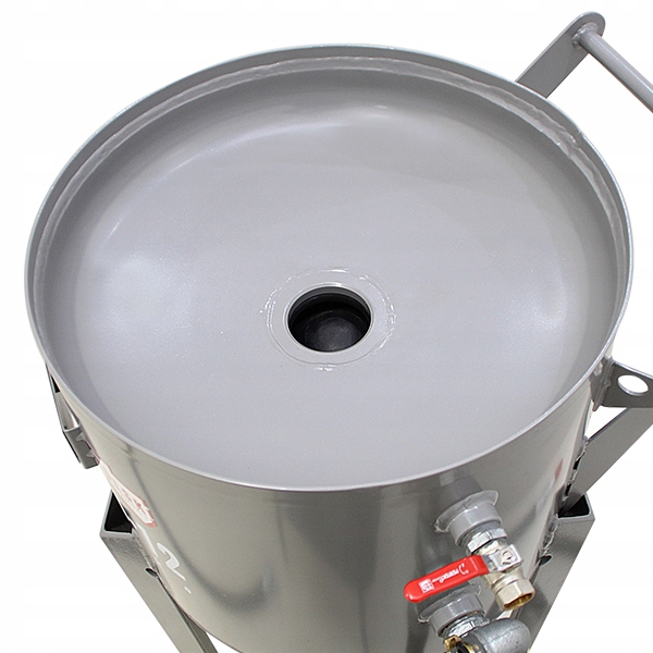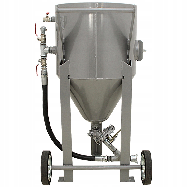 пропонована абразивна Дробоструминна машина-це професійне, безпечне і сучасне обладнання польського виробника. Піскоструминна машина оснащена напірним баком з конічним дном, що полегшує ковзання матеріалу, і ревізійним спусковим гачком, що дозволяє швидко спорожнити резервуар від абразиву. Високоякісний дисковий абразивний клапан німецької марки Clemco відрізняється підвищеною механічною міцністю і зносостійкістю в порівнянні зі стандартними клапанами, встановленими на очисниках конкуруючих компаній. Управління очищувачем легко і безпечно завдяки розташуванню рукоятки управління на кінці робочого проводу. Безперечною перевагою цього рішення є можливість переривання роботи пристрою оператором, безпосередньо виконує процес піскоструминної обробки, що продиктовано останніми правилами техніки безпеки (рішення доступно в якості додаткової опції). Конструкція клапана усуває необхідність в дорогих діафрагмах і поршнях.