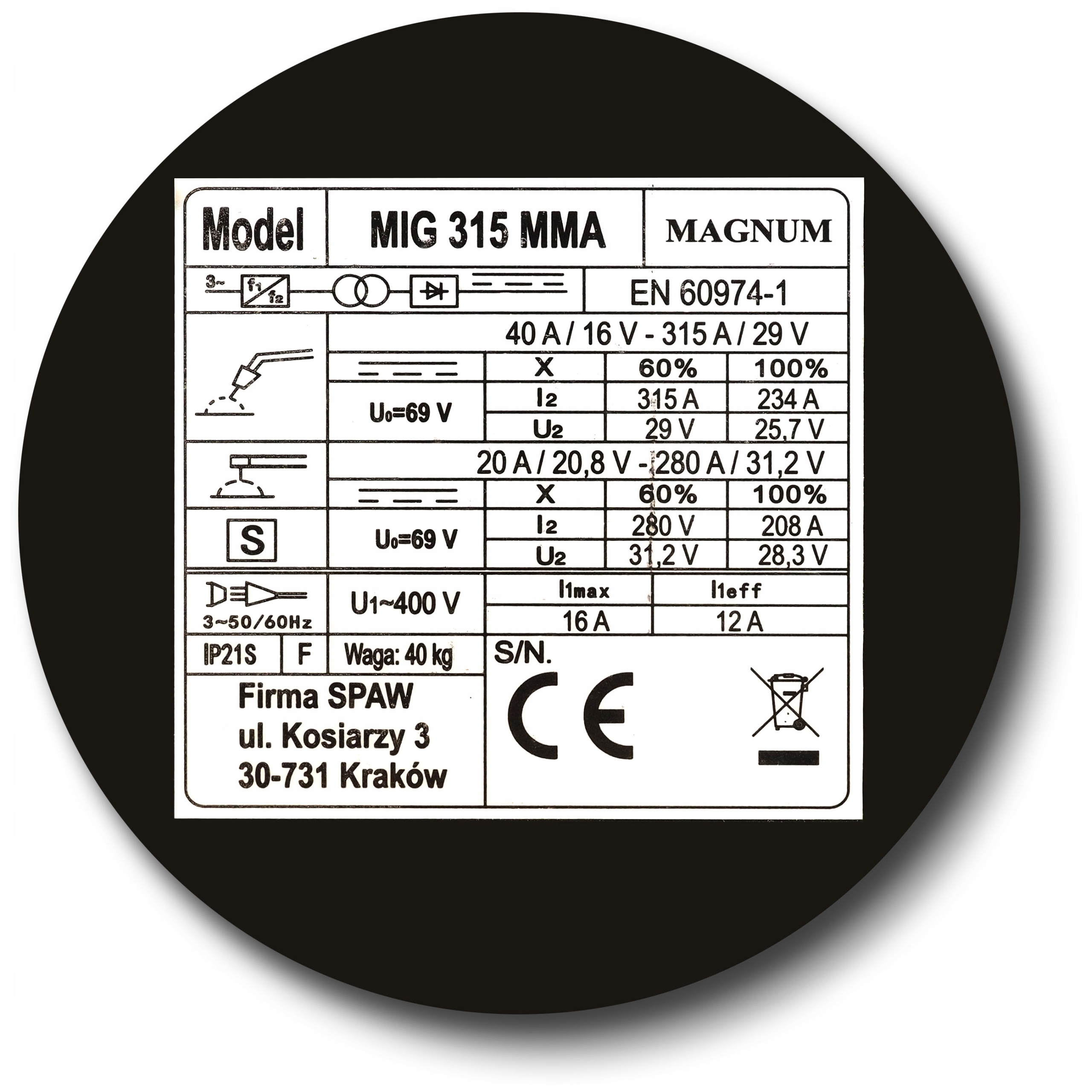 високий зварювальний струм315 A, потужний 4-роликовий живильник 4x4 можливість ефективної і безаварійної зварювання з використанням шпулі до 15 кгі можливість зварювання методом MMA < /B>є незаперечними перевагами цього пристрою.