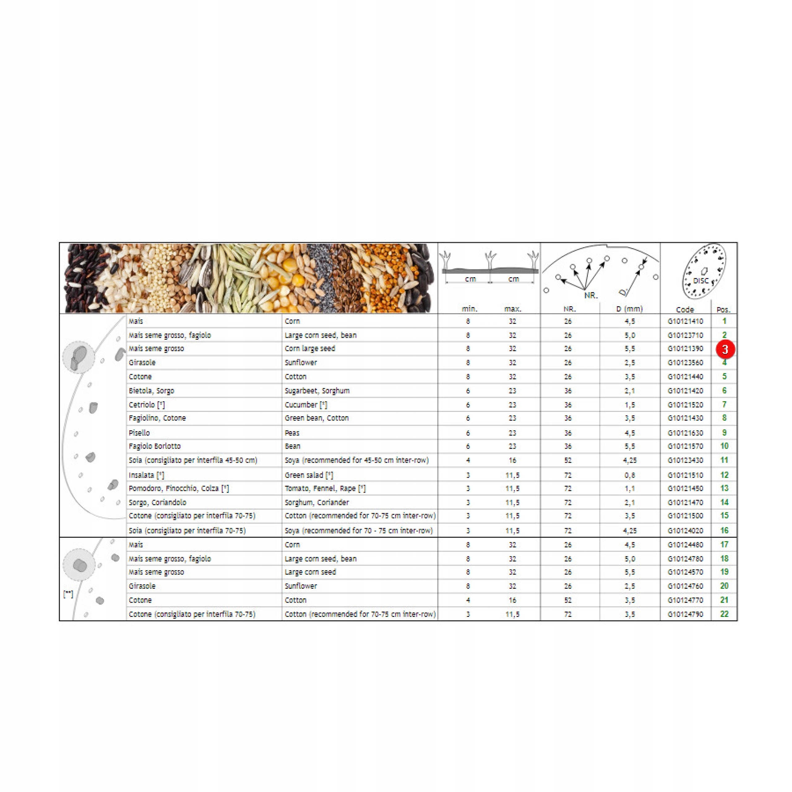 відстань посіву між доріжками: 8-32 см