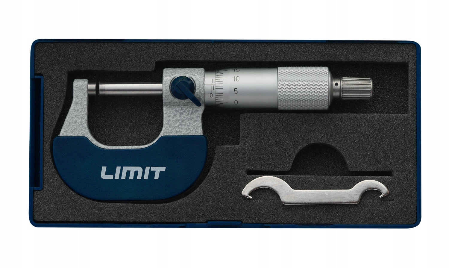 - мікрометр з кованою скобою і матовою хромованою градуюванням, призначений для зовнішніх вимірювань.