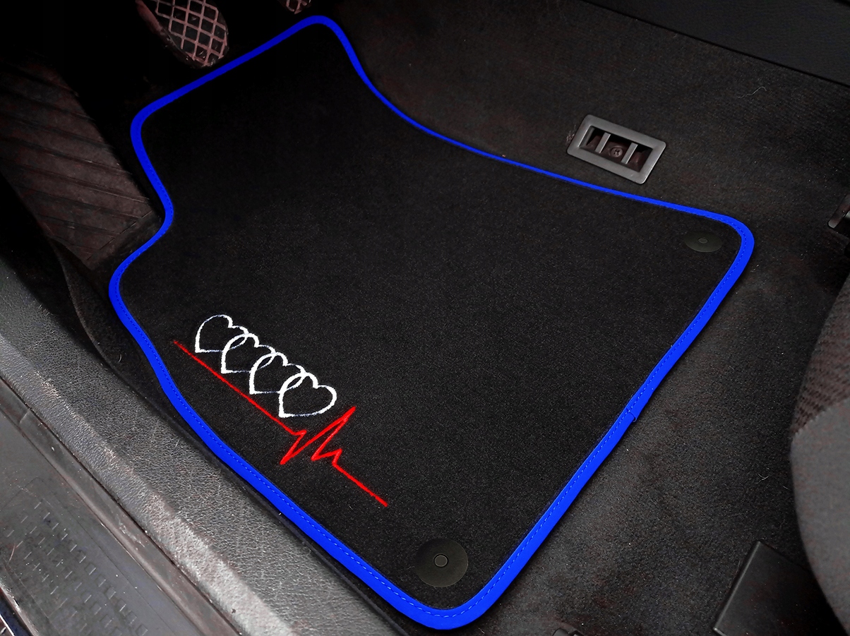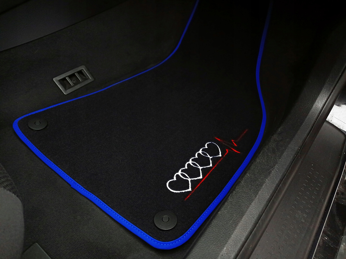 нижче представлені Велюрові килимки у версії "PREMIUM" з унікальною вишивкою вагою 1750 г / м2 товщиною близько 0,5 см, оброблені міцною і міцною обробкою. Килимки розроблені і виготовлені ретельно компанією LASOTA, щоб відповідати формі підлоги Вашого автомобіля. Дно килимків покрито шаром шорсткою гуми, що запобігає промокання і ковзання.