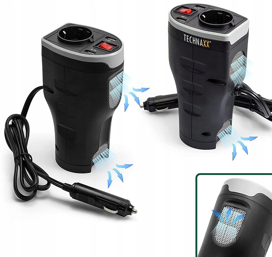 TECHNAXX TE13 – Автомобильный Преобразователь Напряжения 12V/230V 200W с Двух портовую USB Зарядное устройство 5V 1A/2.1 A