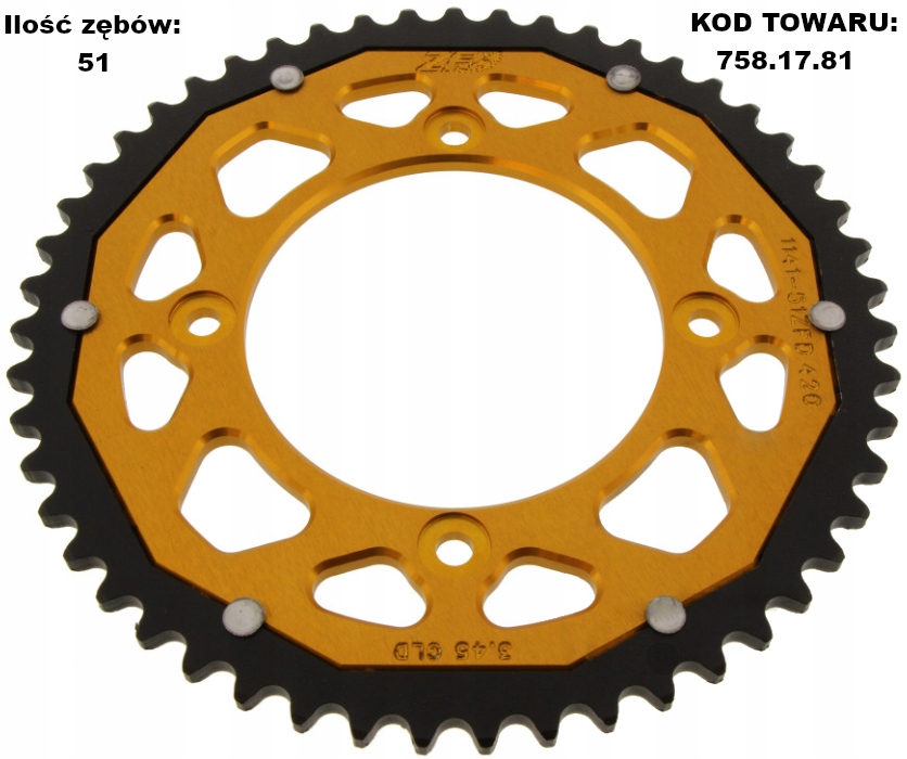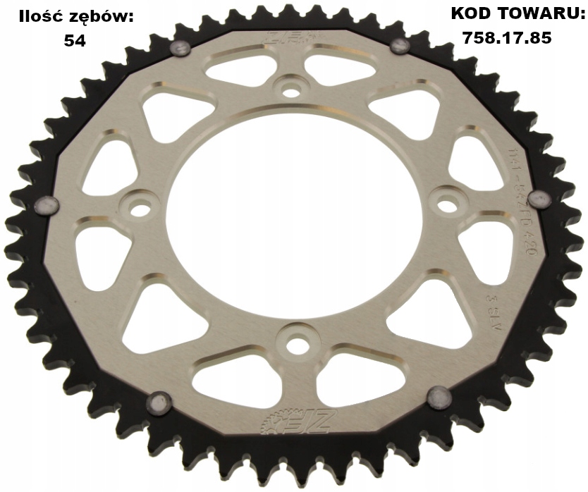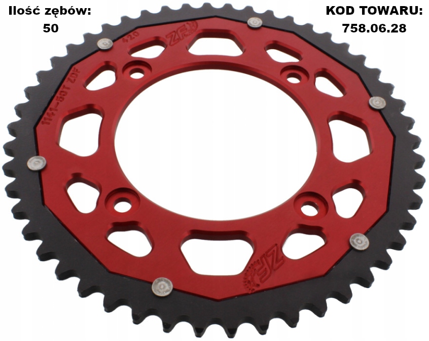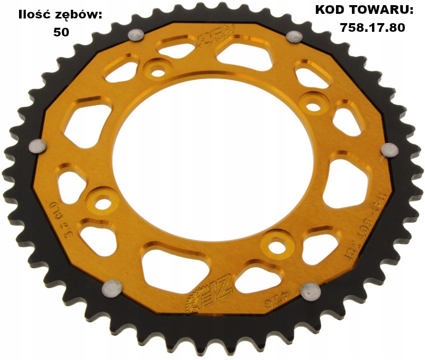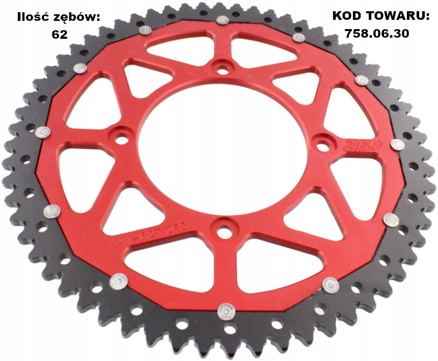 подвійна Зірочка ZF - це продукт вищого класу. Подвійна Технологія у виробництві зірочок для мотоциклів відома вже багато років. Під час їзди на мотоциклі в першу чергу зношується область зубів зірочки. Тому для зниження ваги зубчастої рейки місце кріплення зубчастої рейки було фрезеровано з стійкого до деформації авіаційного дюралюмінію, а зубчастий вінок-зі спеціальної сталі з високою міцністю на стирання. Ефект: 50% ваги сталевої зірочки і 3 рази довший термін служби в порівнянні з зубчастими колесами, повністю виготовленими з алюмінію.