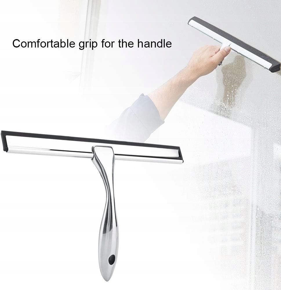 Виготовлений із нержавіючої сталі, безпечний, нетоксичний і не має запаху. Можна використовувати для віконного скла та як щітку для дзеркала у ванній кімнаті. Зручна рукоятка, проста у використанні, може заощадити ваші сили та час. Багаторазовий і довговічний. Можна використовувати неодноразово та довговічний для тривалий термін служби Сконструйований з отвором для підвішування, який легко зберігати склоочисник