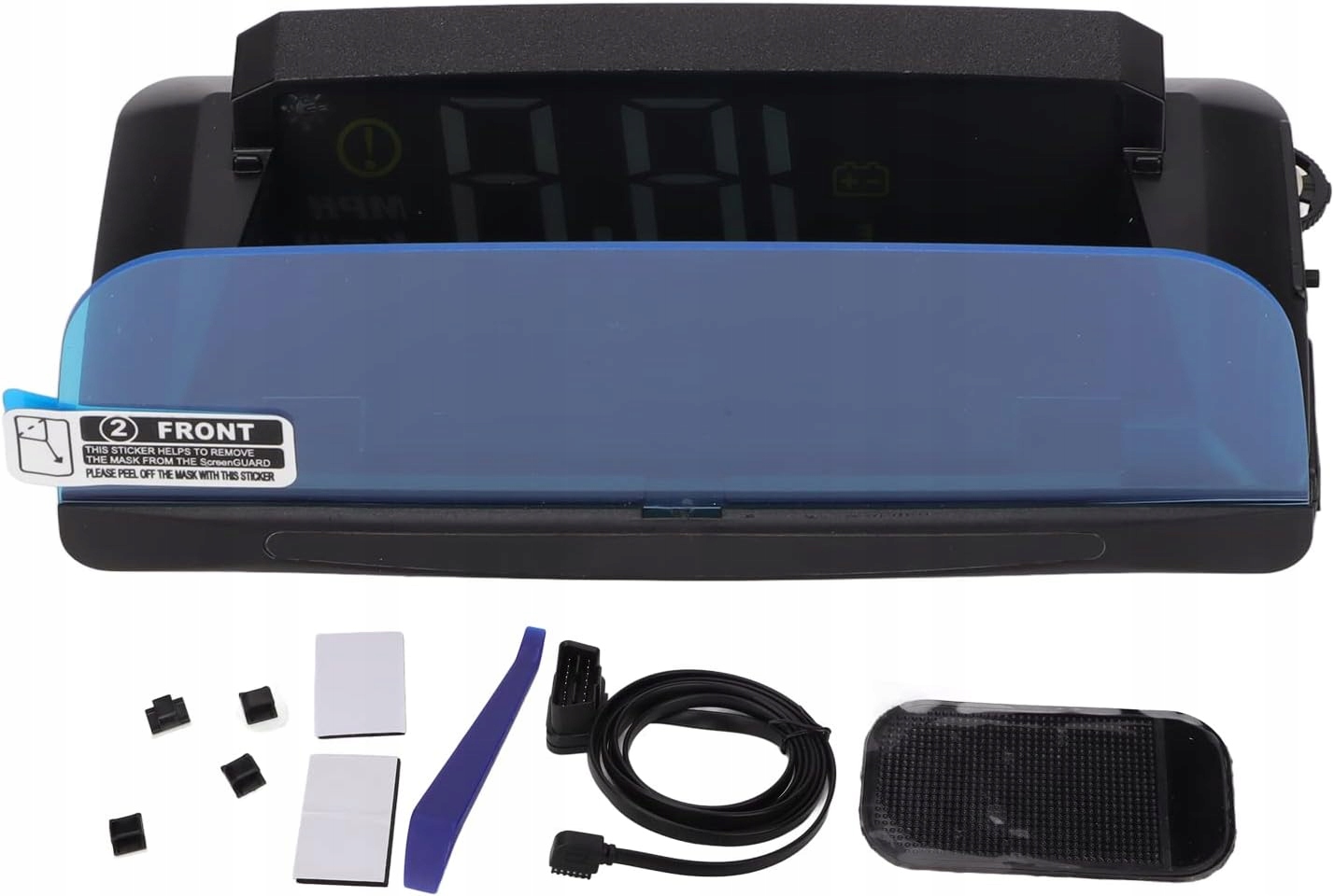 4 режими відображення та чітке читання Яскравість збільшена на 20, що є стійким до сонячного світла, але все ще достатньо чітким. 4 режими відображення можна перемикати за бажанням, кожна деталь чітко видна, що дозволяє завжди платити Сильна сумісність. Ця система HUD OBD II сумісна з європейськими автомобілями після 2005 року та автомобілями в інших регіонах після 2008 року, більшість автомобілів можна використовувати. Цей HUD не підтримує моделі JOBD і OBD I. Сумісний лише з оновленим апаратним забезпеченням Mod. Цей HUD має вдосконалене апаратне забезпечення та повний дизайн програмного забезпечення, що дозволяє працювати в 3 рази швидше, ніж споживання енергії в режимі очікування до 5 мА. Просте встановлення Оснащений високоякісним кабелем OBD II і повним набором аксесуарів для забезпечення простого встановлення. Налаштувати HUD також дуже просто. Після підключення кабелю можна встановити потрібний режим обертанням пульсатора. Потужна функція, цей HUD може відображати швидкість, температура води, напруга, час має перевищення швидкості, сигналізація температури води, сигналізація, напруга, нагадування про відпочинок, сигнал про несправність, односегментний сигнал, чотирисегментний сигнал, підтримка налаштування,