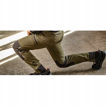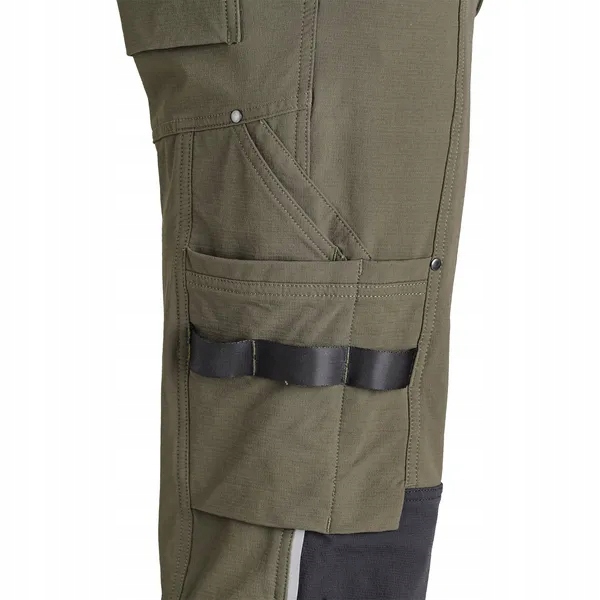 крім того, штани мають можливість легко регулювати довжину ніг на 6 см і зміцнити Кордуру на колінах і навколо отворів кишень, що підвищує їх міцність і стійкість до пошкоджень. У них є зручні кишені, такі як кишеня для телефону/метри і внутрішня кишеня для амортизуючих наколінників.