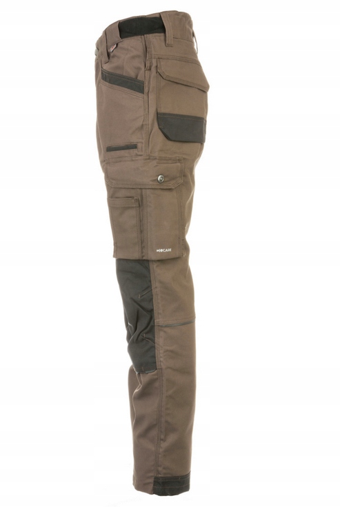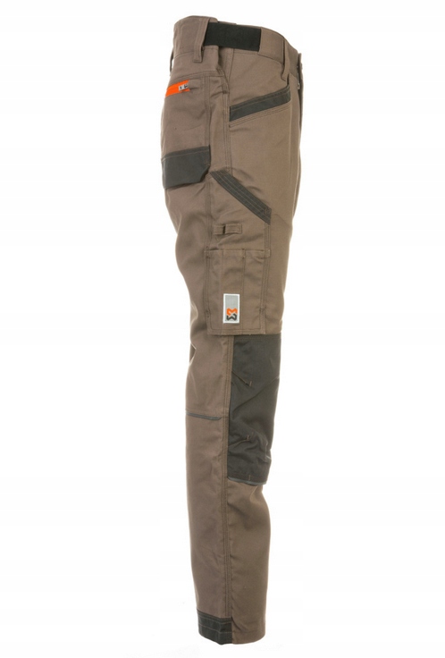 ці робочі штани виготовлені з високоякісної полотняної тканини і забезпечують високий комфорт і захист. Полотняна тканина в основному складається з натуральних волокон-тут бавовна, а також інші міцні тканини, які роблять штани одночасно дуже еластичними і зручними. Еластичні вставки на талії і Нековзна стрічка всередині забезпечують максимальний комфорт при всіх рухах. Штани з більш високим вирізом ззаду і ергономічні місця на колінах також забезпечують ідеальну посадку. Потрійні шви в промежині і посилені кінці ніг роблять штани дуже міцними і довговічними - ідеально підходять для напружених робочих днів. Штани Nature каштанового і коричневого кольору ідеально поєднуються, наприклад, з робочими місцями в лісовій промисловості, а також в сільському господарстві і сільському господарстві. Цей робочий одяг ідеально підходить для всіх майстрів у цих сферах бізнесу. Технічно неперевершені деталі інноваційні робочі штани пропонують місце для зберігання завдяки безлічі практичних і просторих кишень. Це дозволяє зберігати безліч повсякденних предметів для роботи, таких як ручки, викрутки або складна рулетка. У кишені на стегні також є відділення для мобільного телефону, яке захищає від радіації. На штанинах є вентиляційна блискавка, яка забезпечує оптимальну вентиляцію і запобігає накопиченню тепла. Також оснащений додатковими кишенями для колін, виготовленими з CORDURA® відповідно до стандарту EN 14404, він дозволяє легко встановлювати захисні наколінники і, таким чином, захищає суглоби при роботі на колінах. Світловідбиваючі вставки забезпечують кращу видимість під час роботи.