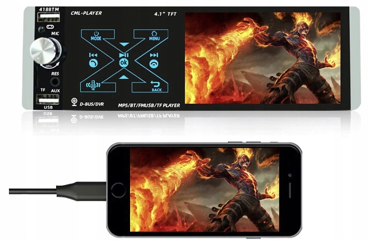 високоякісний фірмовий автомобільний радіоприймач з сенсорним екраном 4,1", який перетворює ваш автомобіль в справжній мультимедійний центр. ви можете дивитися відео, переглядати фотографії, заряджати телефон через високошвидкісний USB-порт. має вбудований гучного зв'язку із зовнішнім мікрофоном, який підвищує безпеку водіння і дозволяє уникнути штрафів.