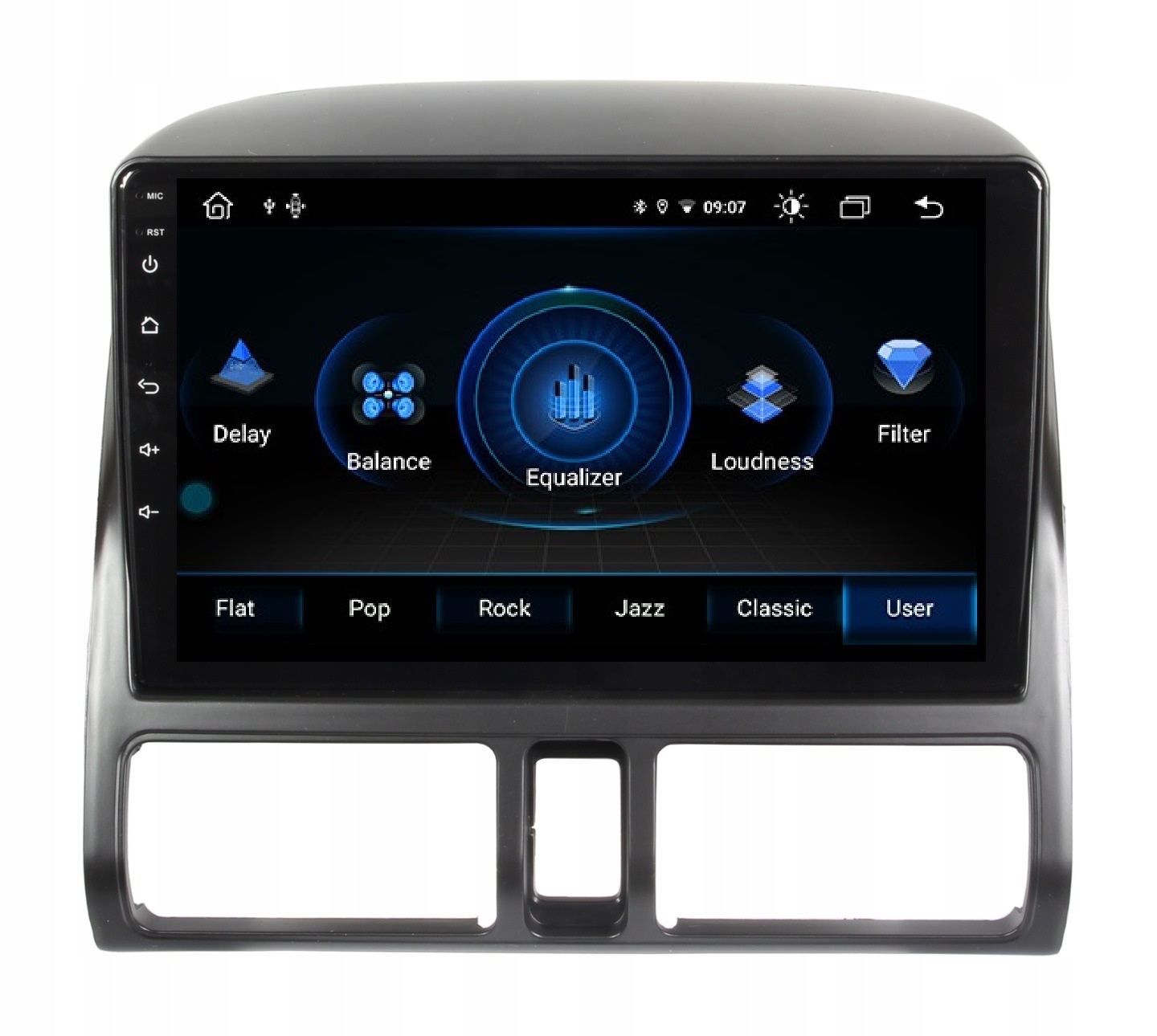 цифровий звуковий процесор і графічний еквалайзер(EQ ) забезпечують високоякісний звук, який задовольнить навіть найвимогливіших любителів музики! Вбудовано кілька режимів, визначених еквалайзером (рок, поп, джаз і т.д.), а також була залишена можливість будь-якої корекції Користувачем. Він має функціюLOUDNESS. Радіо також має опцію FADER, яку ми можемо змінити співвідношення звуку між окремими динаміками.