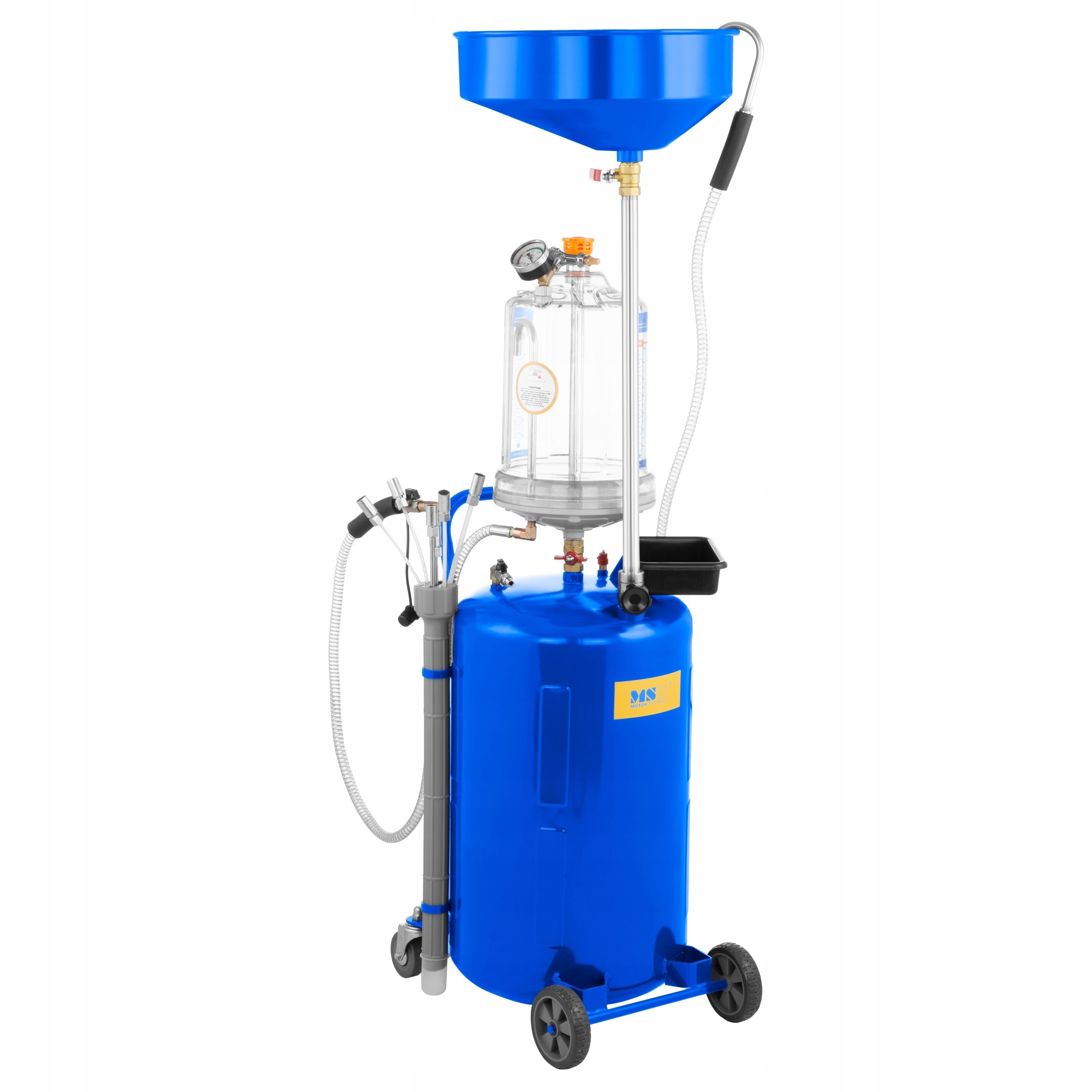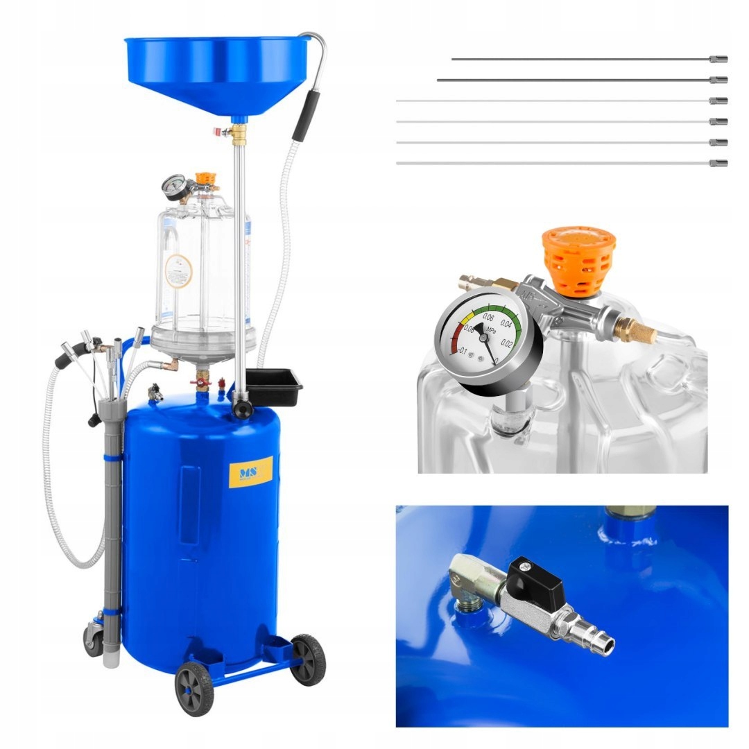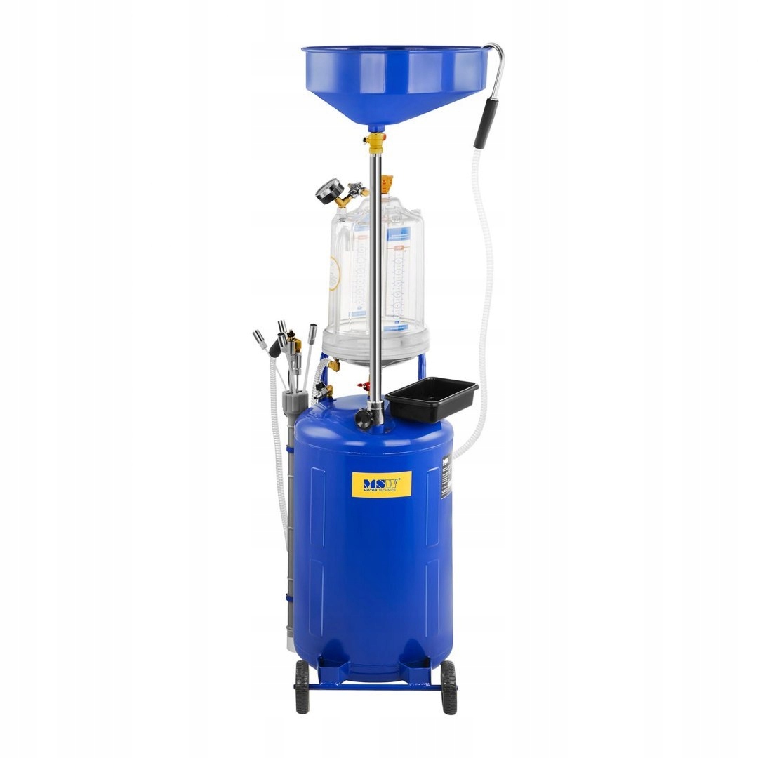 номер виробника:MSW 10060309професійна мийка-всмоктувач MSW для моторного масла, завдяки ефективному насосу ( максимальний тиск - 9 бар < /B>), дозволить швидко злити витратну рідину. Він всмоктується в два резервуари одночасно ( основний - 75 л, контрольний - 10 л < /B>), що гарантує ефективну роботу. Просто помістіть зонд замість щупа для вимірювання масла, і ви можете почати роботу. Пристрій призначений для відводу як холодного, так і гарячого масла. Це економить дорогоцінний час. Для установки наконечника насоса на автомобіль в комплект входять 4 нейлонових і 2 металевих зонда різного діаметру. Для гравітаційного зливу масла використовується спеціальна чаша діаметром 40 см з встановленим фільтром, що відокремлює домішки від рідини. Спеціальний прозорий резервуар об'ємом 10 л дозволить контролювати якість рідини. аналогічний манометр і читається індикатор < /B > також допоможуть в цьому. За безпечне використання пристрою відповідають регулятор тиску іклапан скидання повітря . Міцна конструкція раковини-це заслуга високоякісної сталі з порошковим покриттям, стійкої до пошкоджень і погодних умов.чотири колеса з ПВХ, з яких два передніх поворотних, дозволяють зручно транспортувати пристрій в міру необхідності.особливості продукту: