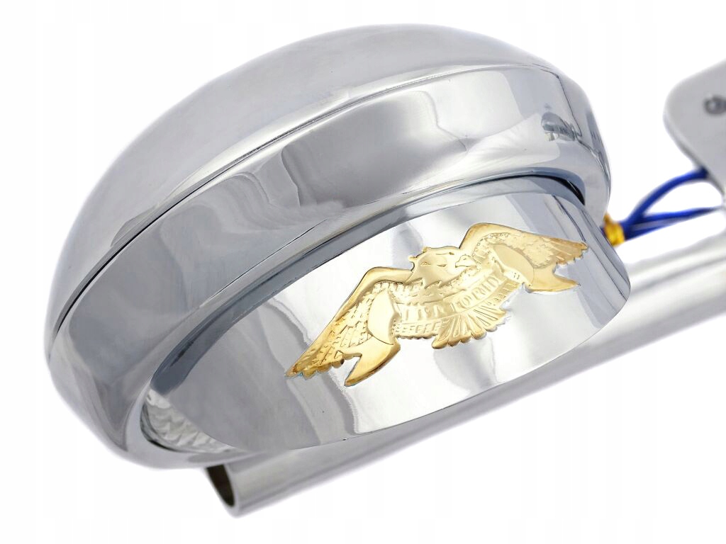 фари прикрашені хромованими козирками з тисненими злотими орлами.