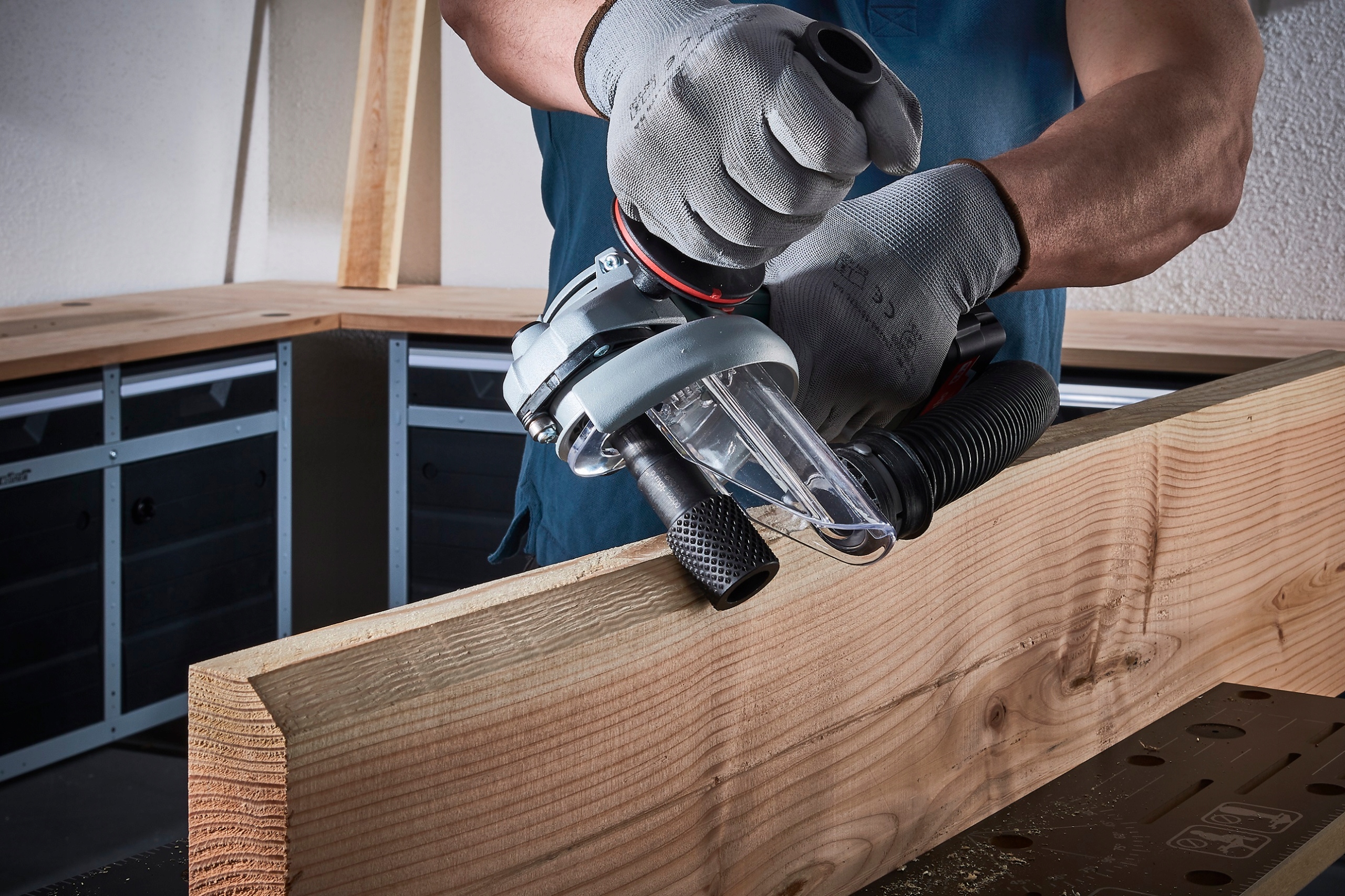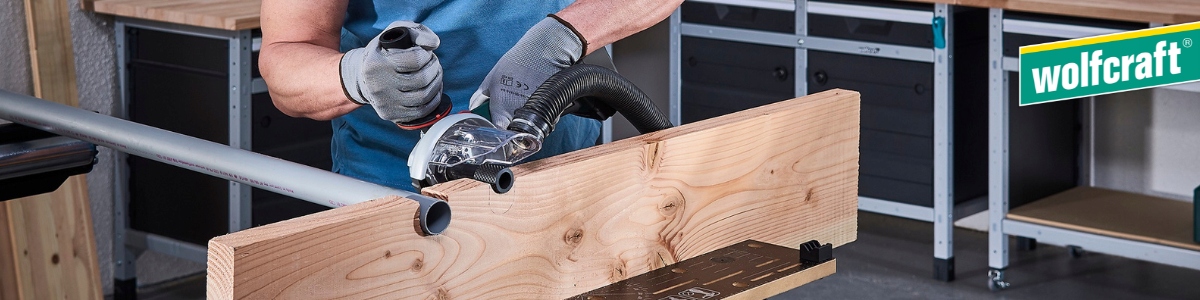 вражає агресивним видаленням матеріалу і дуже швидким прогресом роботи. Для забезпечення найкращої безпеки роботи фрезерні диски завжди слід використовувати з пилозахисною кришкою wolfcraft (арт. № 4399000).е>