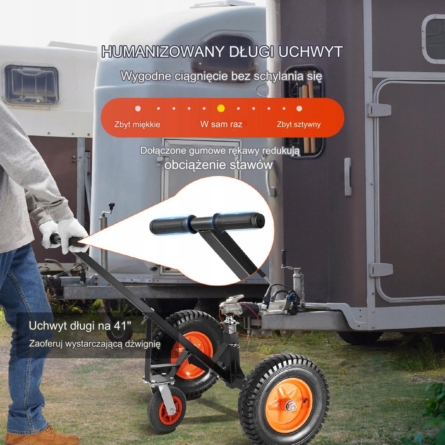 Цей візок для буксирування причепа можна перемикати з режиму буксирування вручну на режим буксирування автомобіля. Це дозволяє переміщати причіп разом із автомобілем, заощаджуючи час та енергію. Крім того, зчіпний пристрій, що входить у комплект, може вмістити кулю зчіпного пристрою діаметром 5 см, а кут кронштейна можна відрегулювати відповідно до вашого автомобіля.