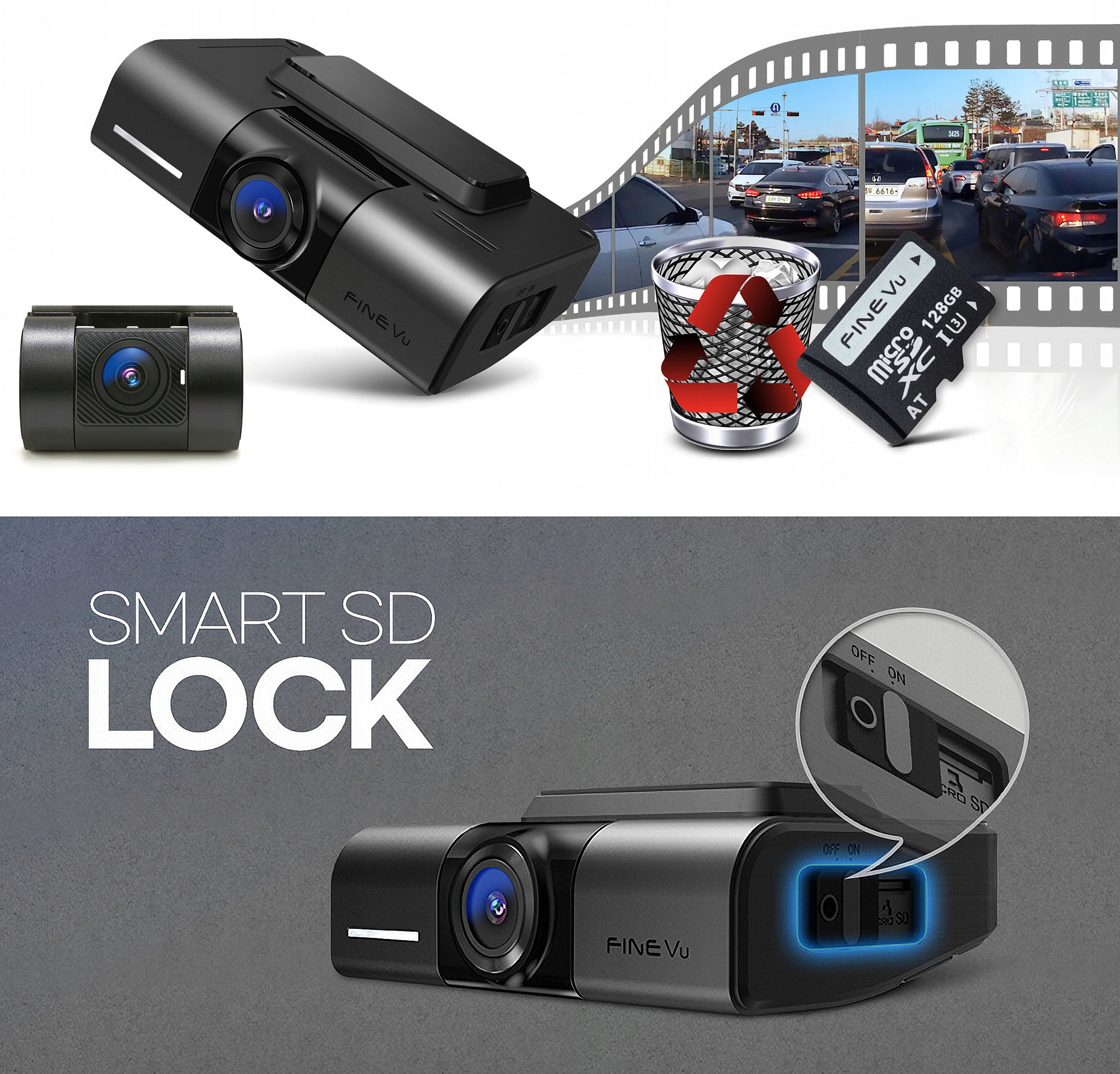 FineVu GX4K — це 2-канальний відеореєстратор, оснащений двома камерами, які можуть одночасно записувати зображення з передньої та задньої панелей. автомобіль . Фронтальна камера дозволяє записувати відео дуже високої якості з найвищою роздільною здатністю 4K Ultra HD 3840x2160p / 30 кадрів в секунду, а задня камера з роздільною здатністю Full HD 1920x1080p також 30 кадрів в секунду. Роздільна здатність Ultra HD в 4 рази вище, ніж Full HD. Завдяки цьому FineVu GX4K завжди записує дуже чітке та детальне зображення кожної події під час руху та паркування.