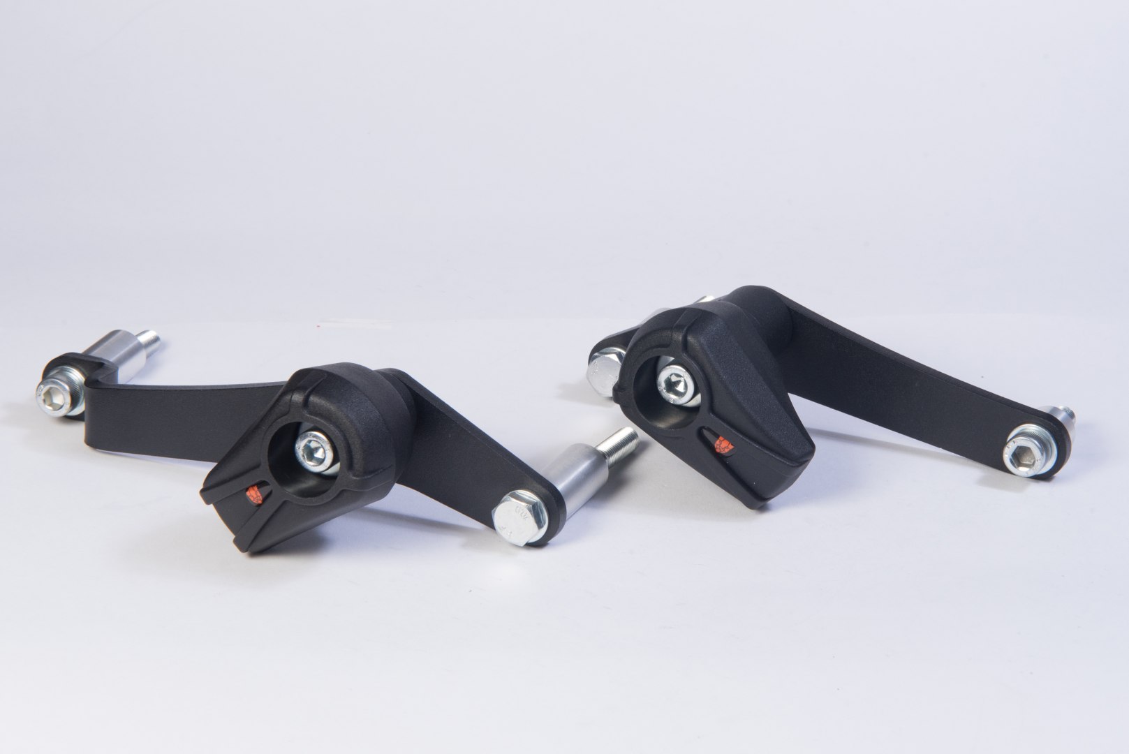 комплект складається з двох наконечників з чорного пластику, кріплень з алюмінієвого сплаву, пофарбованих для захисту від корозії, втулок і кріпильних гвинтів. Кріплення доступні в чорному кольорі (чорний структурний лак, подібний до лаку, який використовують виробники мотоциклів).