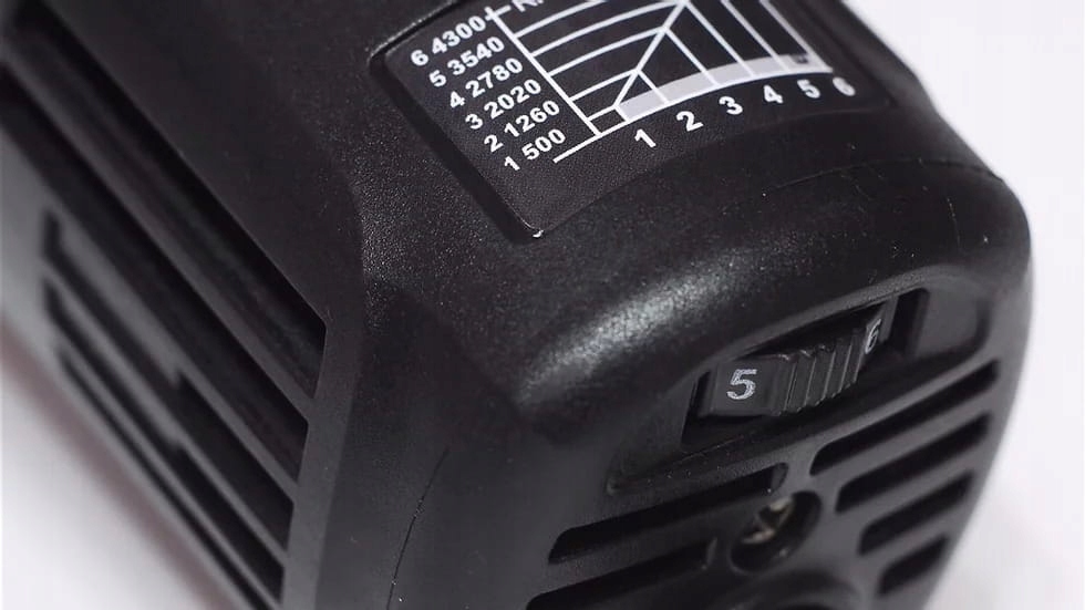 Машина також характеризується дуже широким діапазоном обертів від 1500 до 5500 об/хв. Нижній діапазон швидкості в поєднанні з системою плавного пуску забезпечує хороший контроль під час початкового розподілу пасти, запобігаючи її розбризкуванню, і ефективну роботу з 75-мм подушечками. Однак більш високі діапазони швидкості дуже корисні при роботі з найменшими діаметрами колодок, наприклад, 25 мм, збільшуючи швидкість роботи. Висока потужність двигуна в поєднанні зі стабілізацією обертів дозволяє ефективно і якісно видаляти пошкоджені шари фарби.