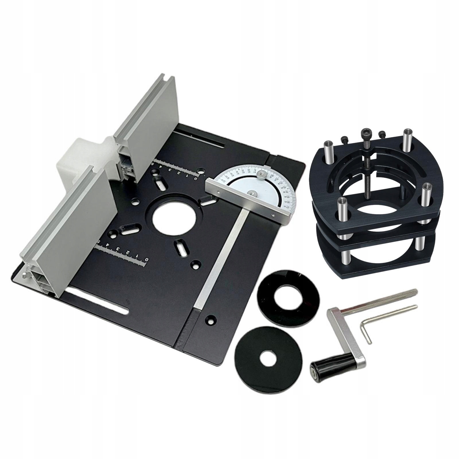 [простота у використанні] спосіб кріплення чотирьох щелеп, що використовується з вставною пластиною маршрутизатора, підходить для виготовлення власного робочого столу маршрутизатора для точної деревообробки, простий в установці і використанні, тільки для невеликих маршрутизаторів
