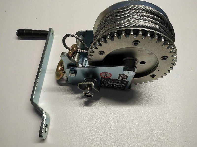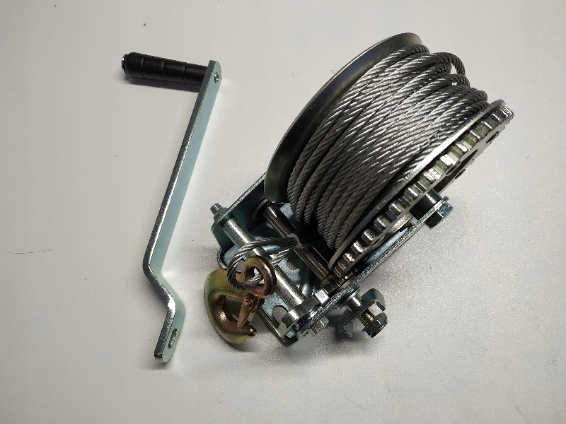 оснащений 20-метровим 4, 8-міліметровим дротяним тросом без скручування з запобіжним гаком і запобіжним язичком. Захисна вкладка запобігає небажаному звільненню вантажу.