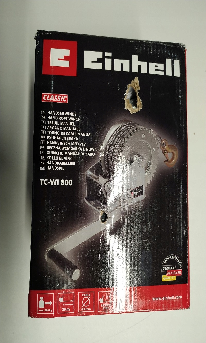 Einhell 2260170 ручна лебідка до 800 кг Звичайна ціна: 253 злотих стан: новий. Примітки: подряпини на лебідці через зберігання. Оригінальна упаковка передана. Реальні фотографії додані в опис. продукт має оригінальну упаковку. зміст: лебідка, керівництво англійською, німецькою, голландською, іспанською, французькою, італійською.