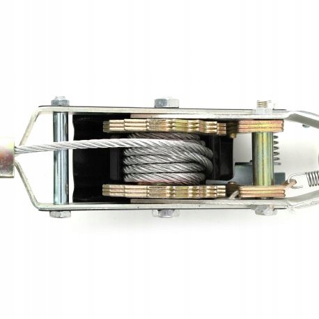 він був виготовлений із сталевого троса і важеля, що приводить барабан з храповим механізмом .