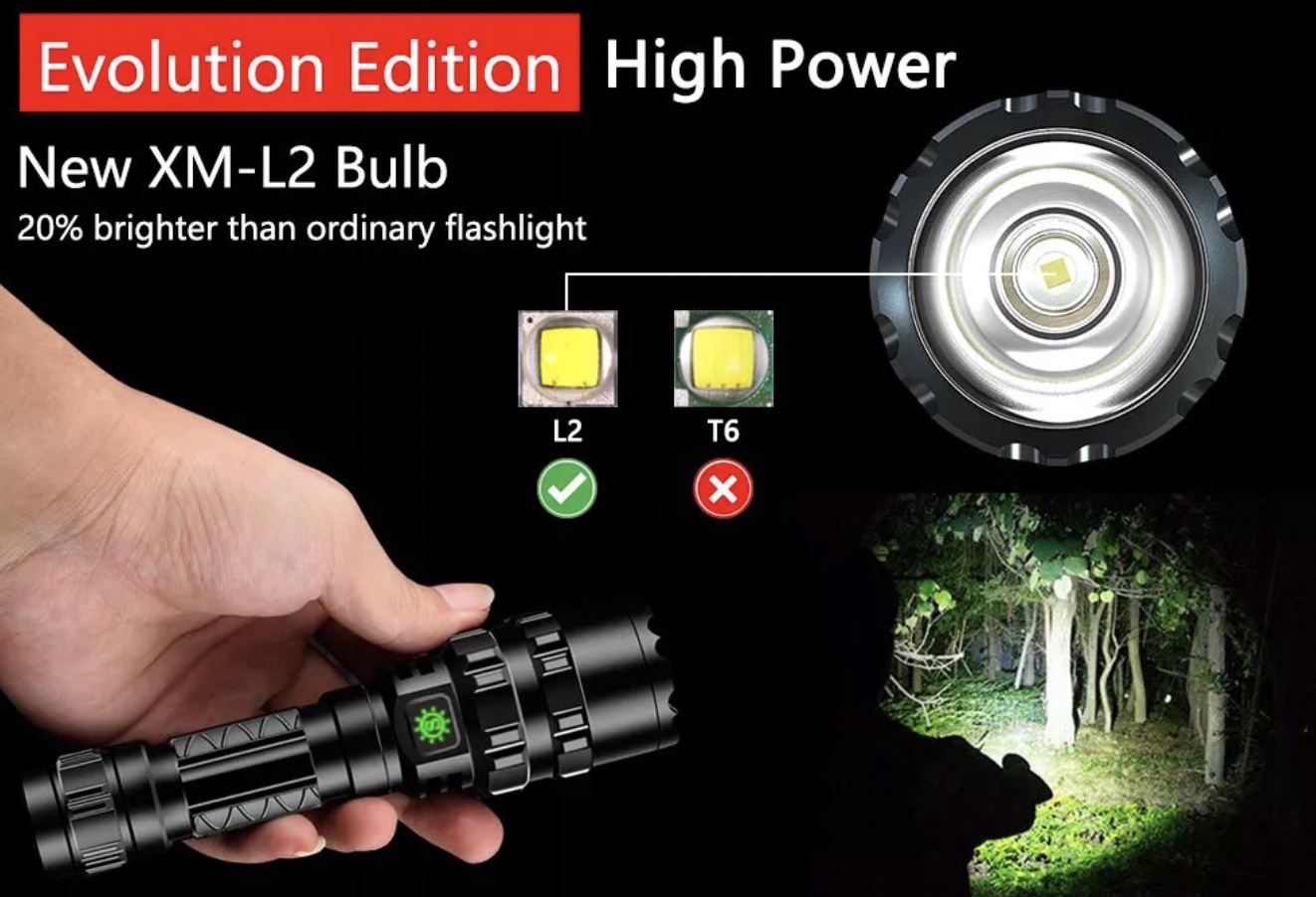 це новітній дизайн діода, набагато яскравіше, ніж типовий T6 його термін служби становить до 100000h, а потужність світла навіть на 20% могутніше