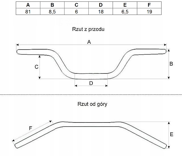 зовнішній діаметр керма в місці установки: 28,5 мм,