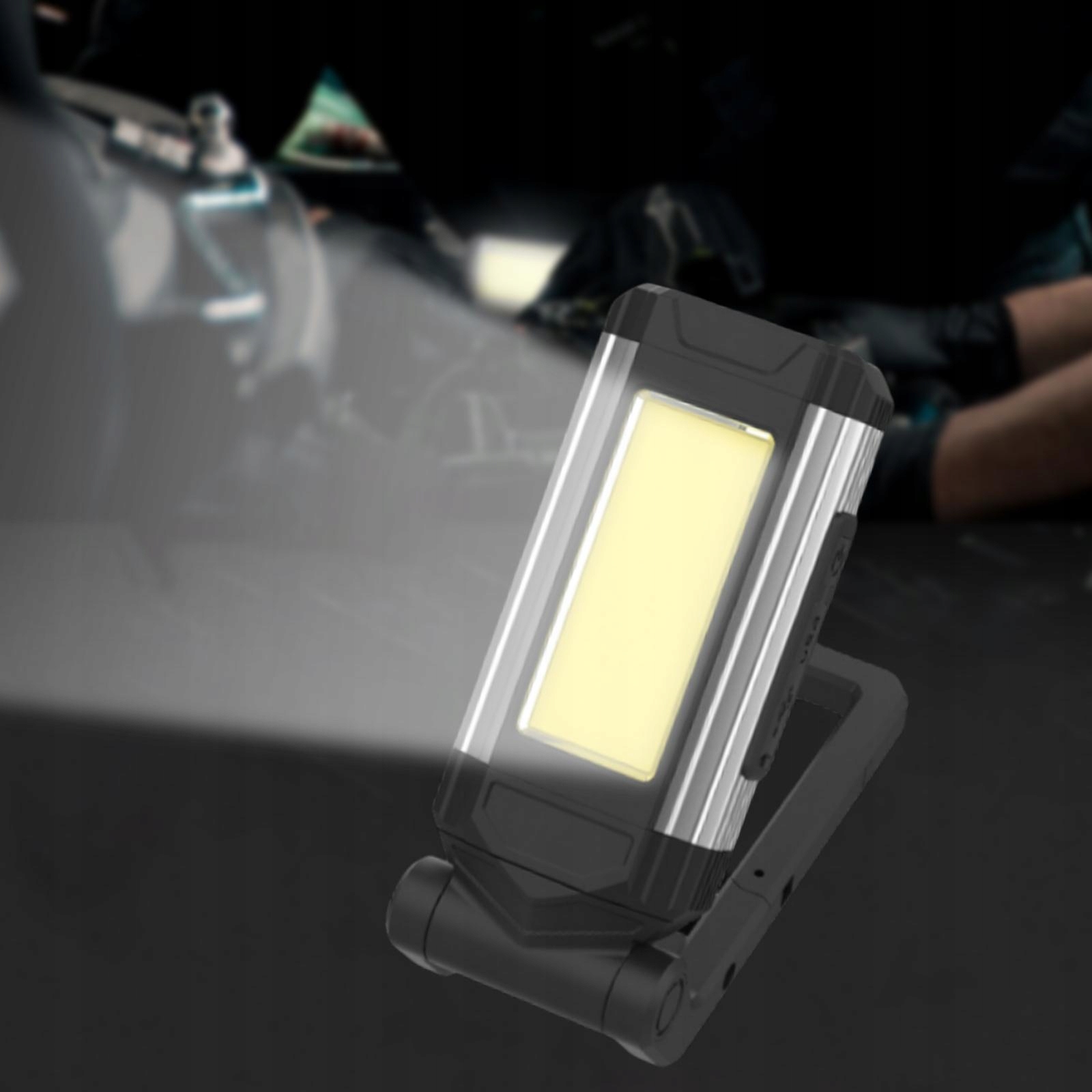 : складаний / дизайн гачка: проста модель гачка: менший і більш портативний, прихований гачок, вільне обертання градусів, з пряжкою гаманця; складна модель: складна і обертається для більшої зручності, регульований кронштейн, 180 градусів, головка може мати 360 градусів ступінь нескінченного обертання супер XPE COB: 24 супер яскравих кульки для COB створюють великий світло через високу дифузію, з більшою площею опромінення USB-вхід USB-вихід: вбудований інтелектуальний чіп швидкої зарядки, більш швидка швидкість зарядки акумулятора ефективно і може на металі, забезпечує аварійне освітлення, простий в обслуговуванні 5 режимів роботи: можна вільно регулювати,: XPE високий,: COB високий, mode3 : COB низький, mode4: COB червоне світло, mode5: cob червоне світло спалаху