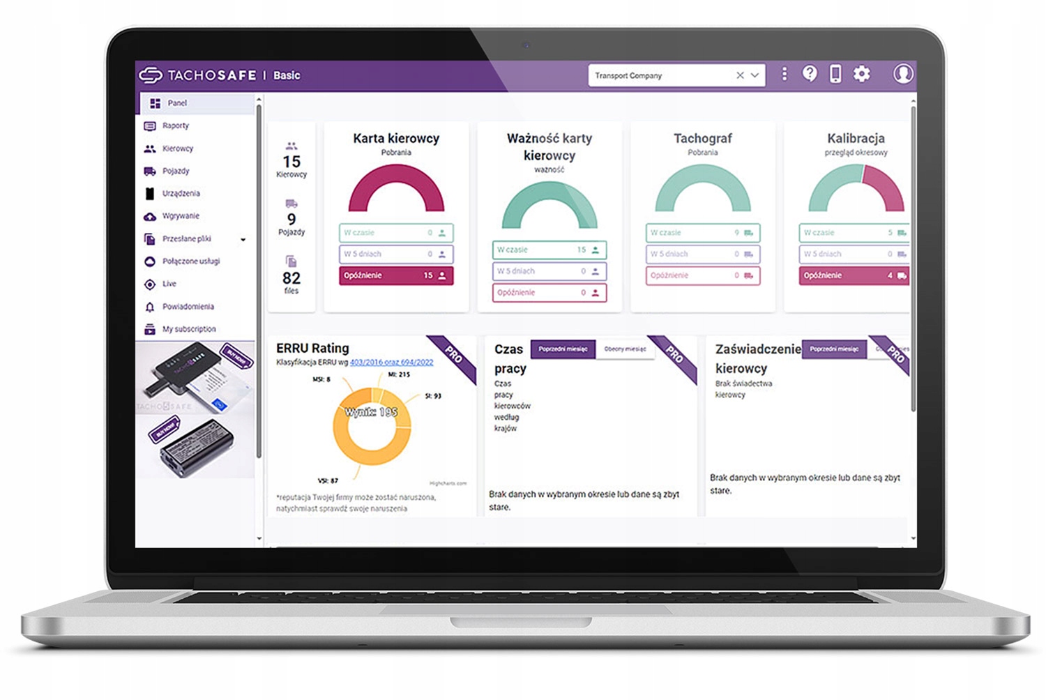 • Безпечне зберігання даних у хмарі – базовий аналіз завантажених даних у TachoSafe WEB без додаткової плати