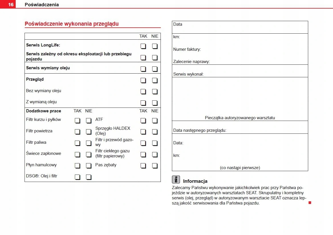 Seat Польська сервісна книга 2010-2014