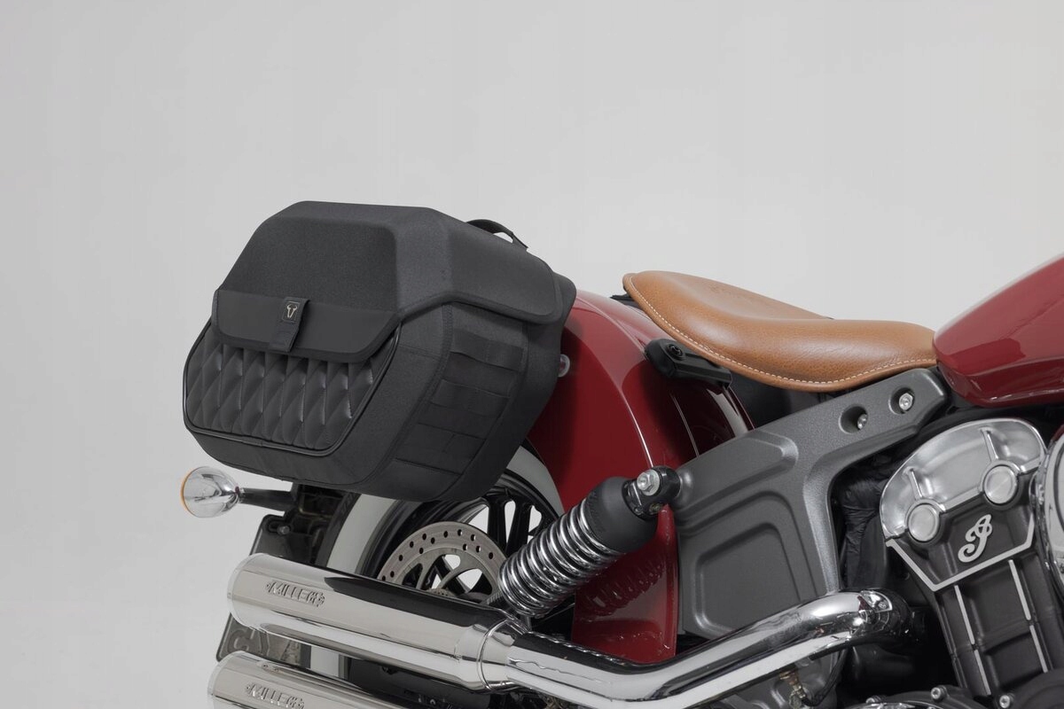просторі сідельні сумки повністю чорні і підкреслюють виразність мотоцикла завдяки поєднанню текстильної тканини і натуральної штучної шкіри з хитромудрою строчкою.