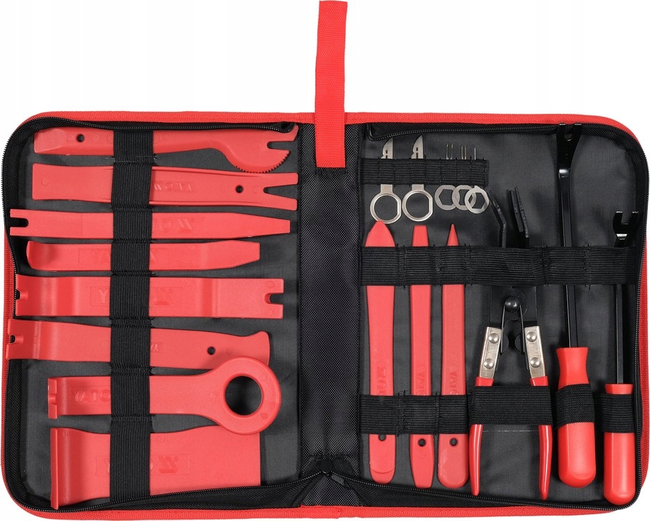 професійний набір знімачів для розбирання оббивки, затискачів і автомобільних молдингів. Також стане в нагоді при знятті автомагнітоли, лічильника, електронного обладнання. Елементи виготовлені з міцного пластику, тому ви не будете сколоти просторікування оббивки при її піддяганні. Набір рекомендується для роботи в автосервісах, оббивці, листовому металі і лакофарбовому обладнанні.е>
