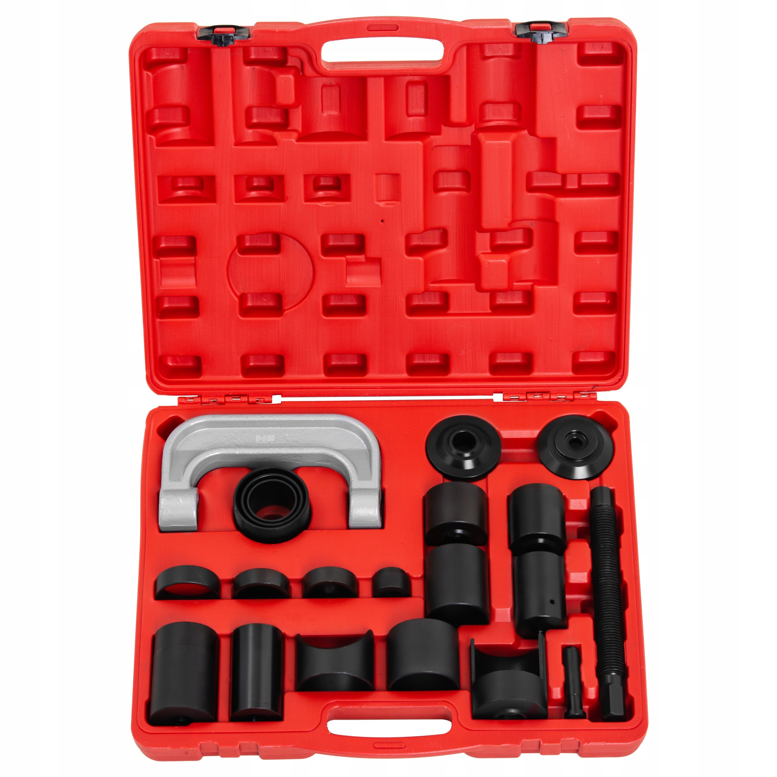 знімач кульових штифтів < /B> марки MSW є аксесуаром для професійного використання в автомеханічних майстернях, автосервісах, гаражах і т.д. Комплект складається з болта з хвостовиком M25 ( довжина 27 см) і багатьох функціональних насадок. Завдяки їм інструменти можна використовувати для вилучення і установки кульових шарнірів на автомобілях Ford (фургони, позашляховики і легкі вантажівки до 2003 року), Dodge (легкі вантажівки до 1998 року, Durango і Dakota до 2003 року), Honda (Accord, Civic, del Sol і Prelude до 2001 року) і багатьох інших нафтових брендів (моделі транспортерів і позашляховиків).