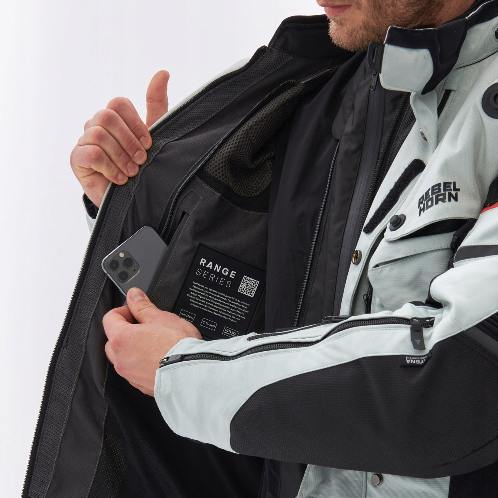 Rebelhorn Range — це довга тришарова мотоциклетна куртка для подорожей по дорозі. Його сучасні рішення забезпечать максимальний комфорт і безпеку під час тривалих подорожей. Він оснащений знімною мембраною та утеплюючим кожухом, який можна використовувати самостійно після зняття з мотоцикла. Вентиляція і комір закриваються за допомогою магнітної застібки Fidlock. Куртка Range стане ідеальним супутником у подорожі навіть у найскладніші місця.