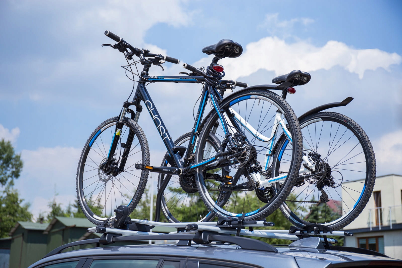 у нашій пропозиції знаходяться балки даху, пристосовані для установки велосипедної стійки (система "T"), а також набори багажників для двох або трьох велосипедів. е>