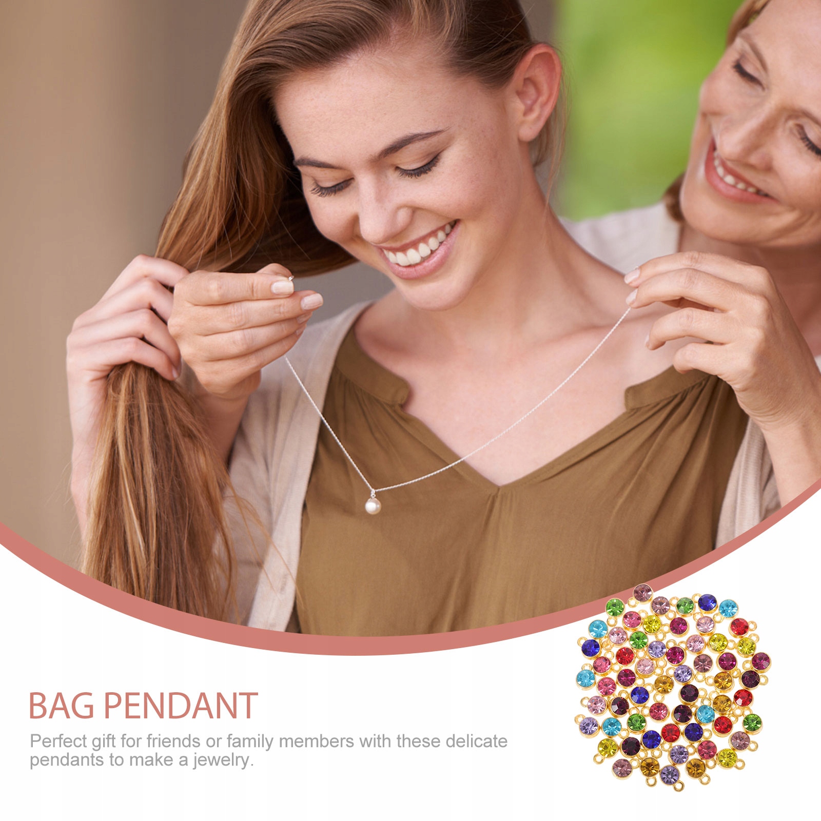 Цей виріб являє собою кулон-намисто, виготовлений зі сплаву та кристалічного матеріалу, що забезпечує довговічність у використанні. Він має креативну форму, що робить його більш привабливим і красивим. Гарний декор для вашого намиста чи сумки.