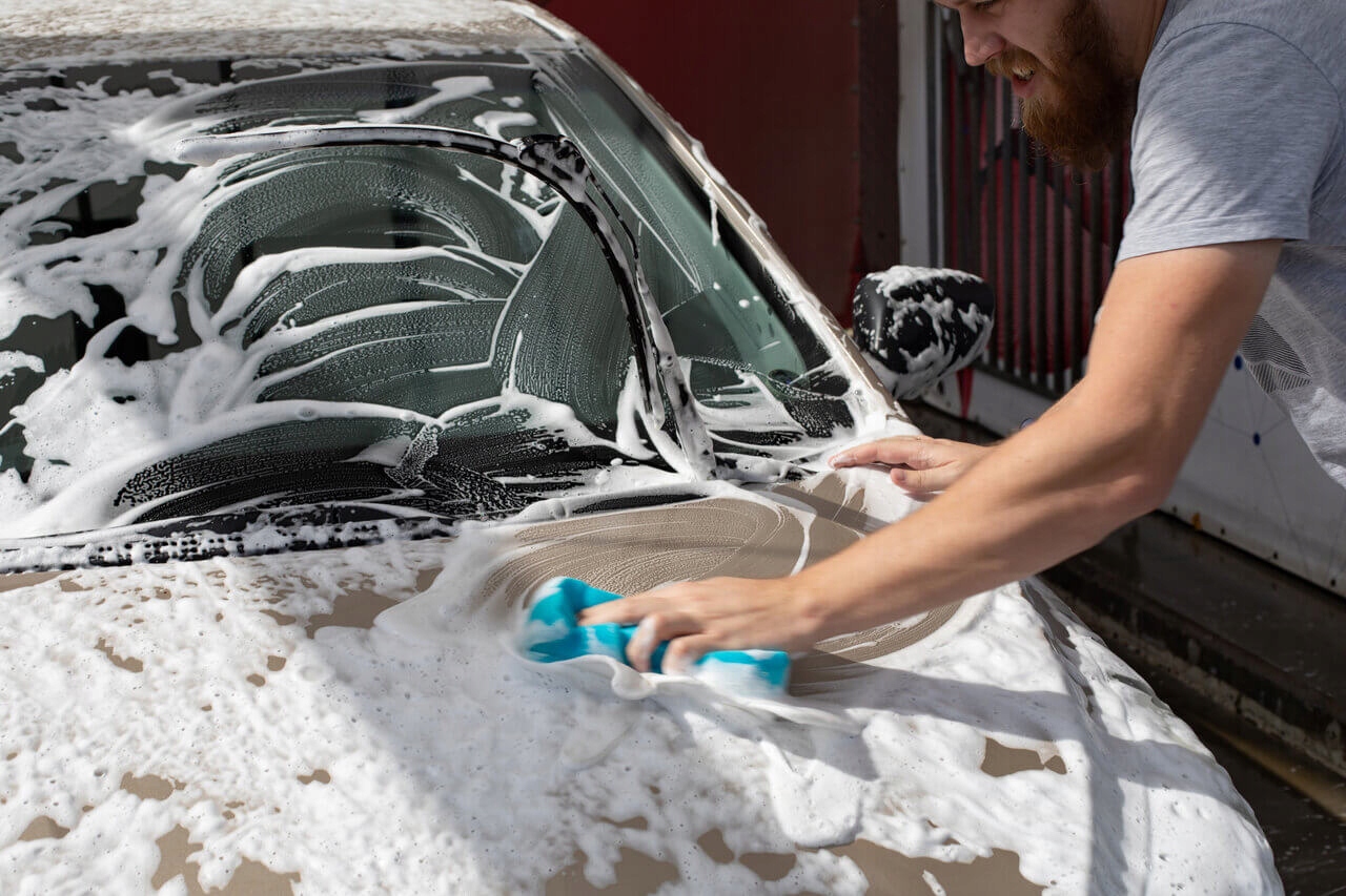 • вимийте автомобіль рукавичкою / губкою з мікрофібри зверху вниз.