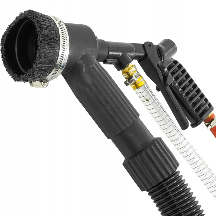 сифонний піскоструминний апарат без пилу з резервуаром ємністю 106 л.сифонний піскоструминний апарат забезпечує швидку і точну очистку металевих елементів. Мобільний піскоструминний апарат дозволяє піскоструминну обробку і очищення в напіввідкритому контурі. Піскоструминна машина оснащена пиловидалювачем, пилососом, який, як і пилозбірники на інших пристроях, наприклад, дрилі, збирає абразив, що відскакує від піскоструминної поверхні, а потім знову передає його в резервуар з абразивом.Піскоструминний пістолет забезпечений насадкою пилососа з щіткою, яка герметизує з'єднання і запобігає виходу абразиву назовні. Функція всмоктування абразиву гарантує чистоту на робочому місці. Проста, міцна конструкція резервуара забезпечує довговічність і безвідмовність піскоструминного обладнання. Ходові колеса і додаткова зручна ручка підвищують зручність транспортування і ергономічність використання. Відмінними рисами безпилової піскоструминної машини є висока ефективність роботи і динаміка піскоструминної обробки. У комплекті з сифонним піскоструминним апаратом є дві насадки для піскоструминної обробки.