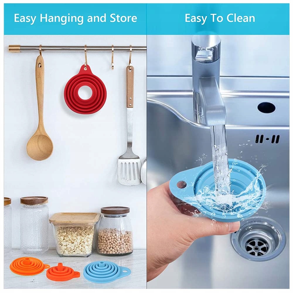 Silion для контакту з харчовими продуктами кухонна воронка виготовлена з м'якого і гнучкого силікону не містить BPA термостійкий від 40F до 392c вам не потрібно турбуватися про те, що воронка МО завдасть шкоди здоров'ю вашої родини. Проста в очищенні кухонна воронка зручна для сім'ї, вона дуже зручна для очищення, вам просто потрібно помити теплу воду і додати трохи myda або woy в посудомийну машину. Скад дизайн Ця воронка має скадан конструкції mona go atwo буде висіти на тілі або зручно одою в ящику для економії ефективного простору на кухні. Широке застосування кухонна воронка мое переносить Пини дрібний порошок Мае чстекі та ін а кухонна воронка підходить для майже всіх контейнерів. 100 задоволення гарантовано ваше задоволення є нашим головним пріоритетом. Якщо у вас виникли проблеми з придбаним продуктом, повідомте нас, і ми обміняємо його на товар або повернемо вам гроші.е>