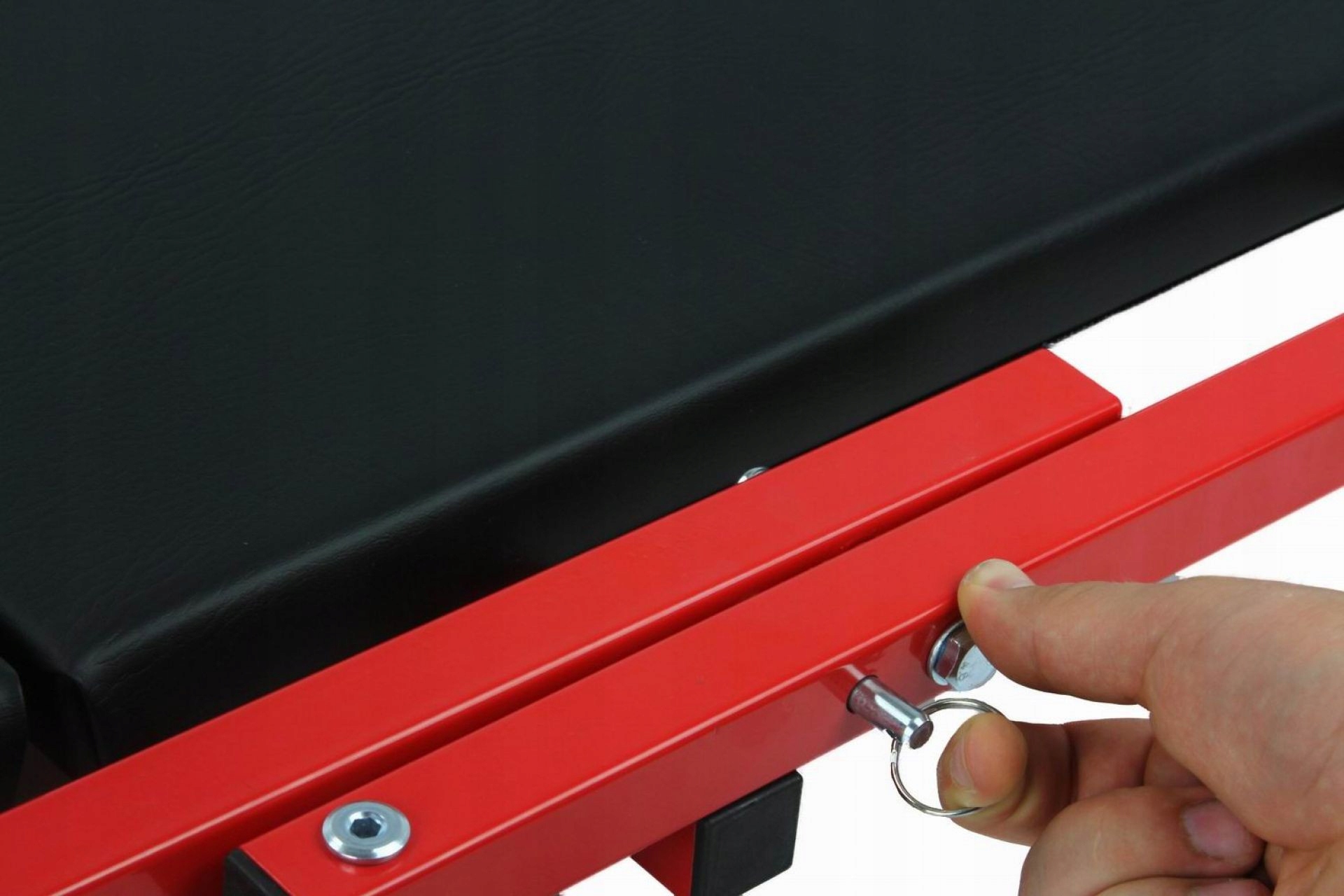 рама виготовлена з металу, а сидіння-з екологічно чистого і міцного пластику. Він оснащений 6 обертовими колесами на підшипнику, що значно полегшує його маневрування. Одним рухом ми можемо перетворити його в практичне зручне сидіння для майстерні.