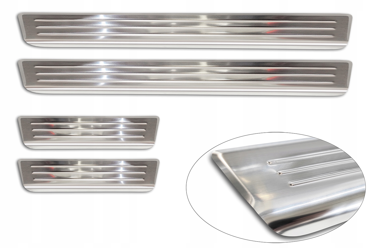 Смужки захищають фарбу на порозі автомобіля від подряпин і пошкоджень під час посадки та висадки. Крім того, вони є оригінальним і елегантним доповненням інтер'єру будь-якого автомобіля.